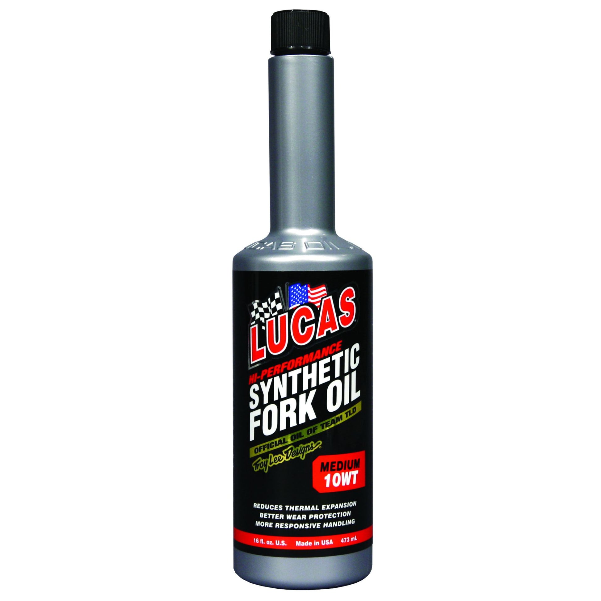 Lucas High Performance Synthetic Fork Oil Medium (10 wt.) is formulated with the highest quality synthetic base oils and our unique additive system to improve performance and extend the life of your fork?s internal parts. Provides highly responsive handling and better shock behavior. Our High Performance Synthetic Fork Oil Medium (10 wt.) prevents seal hardening, oxidation and oil thickening, foaming and static friction. Also, reduces thermal expansion and provides better wear protection. Designed for use in all systems, including damping rod, cartridge, bladder, conventional and inverted forks.