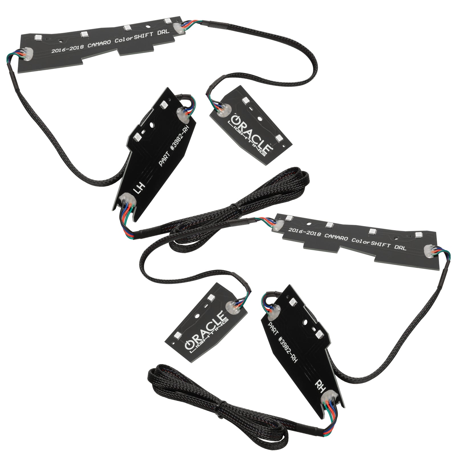 ColorSHIFT RGB+W Headlight DRL Upgrade for the 6th Gen Camaro. Upgrade your lights to any color by simply replacing the factory DRL circuit board with the ORACLE ColorSHIFT circuit board.Featuring our new high-performance RGB+W chips, this new kit allows you to utilize the existing DRL feature on your 6th Gen Camaro LED Headlights and easily convert it to Color-Changing DRLs while maintaining a true White DRL. These replacement boards feature our traditional RGB ColorSHIFT technology along with an extra "White LED" which allows for truer white tones, a crisp white DRL color option and the ability to instantly switch over for 100% legal road driving. These DRL boards can make hundreds of different colors, dozens of patterns, control the brightness, and even the speed of the functions as well! Will only fit Camaro models with OEM DRLS. Professional installation recommended with our premium silicone sealant. White and amber are street-legal colors. Other colors not intended for on-road use; please verify your state and local driving laws.