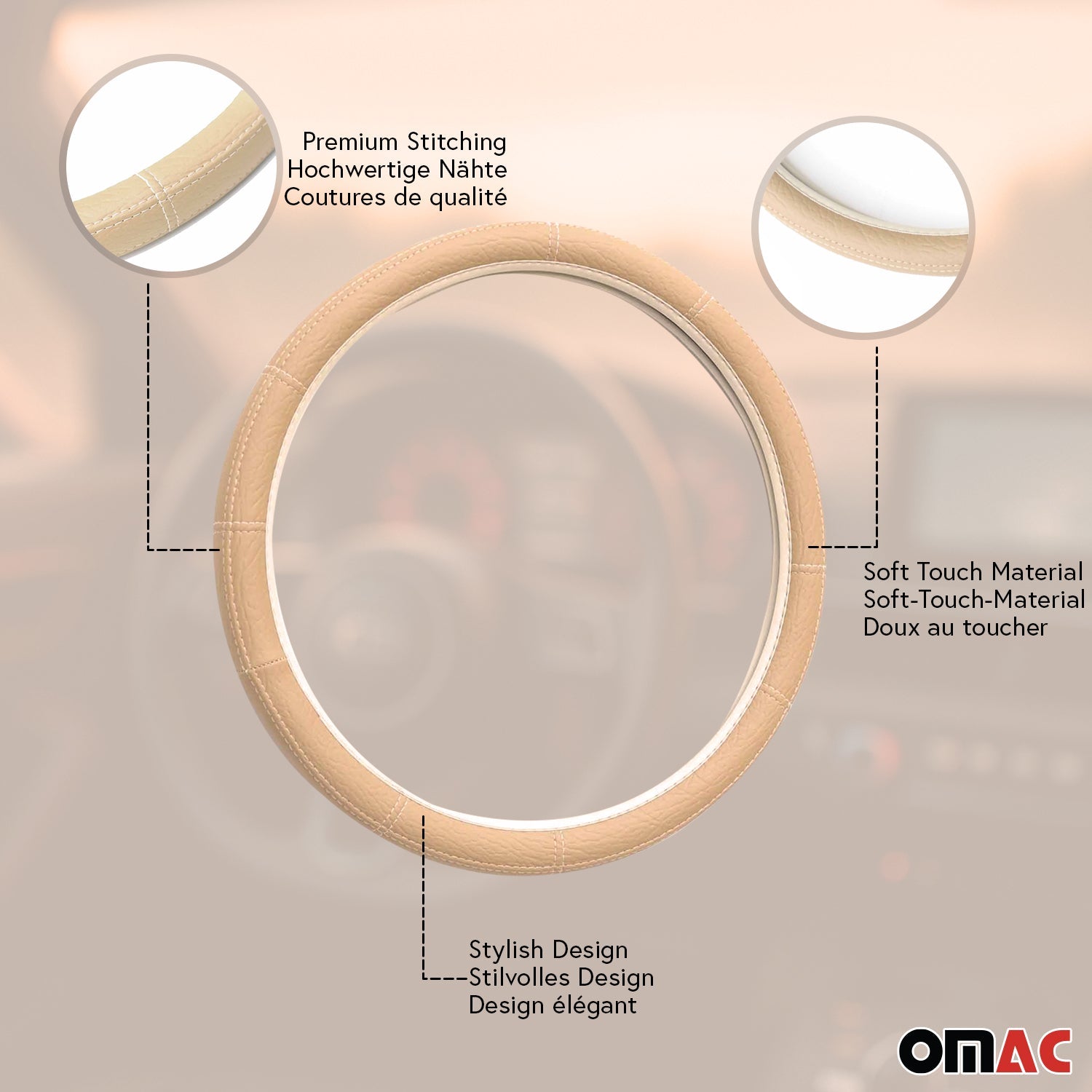 14.5-15.5’’ Steering Wheel Cover Beige Leather Anti-slip Breathable