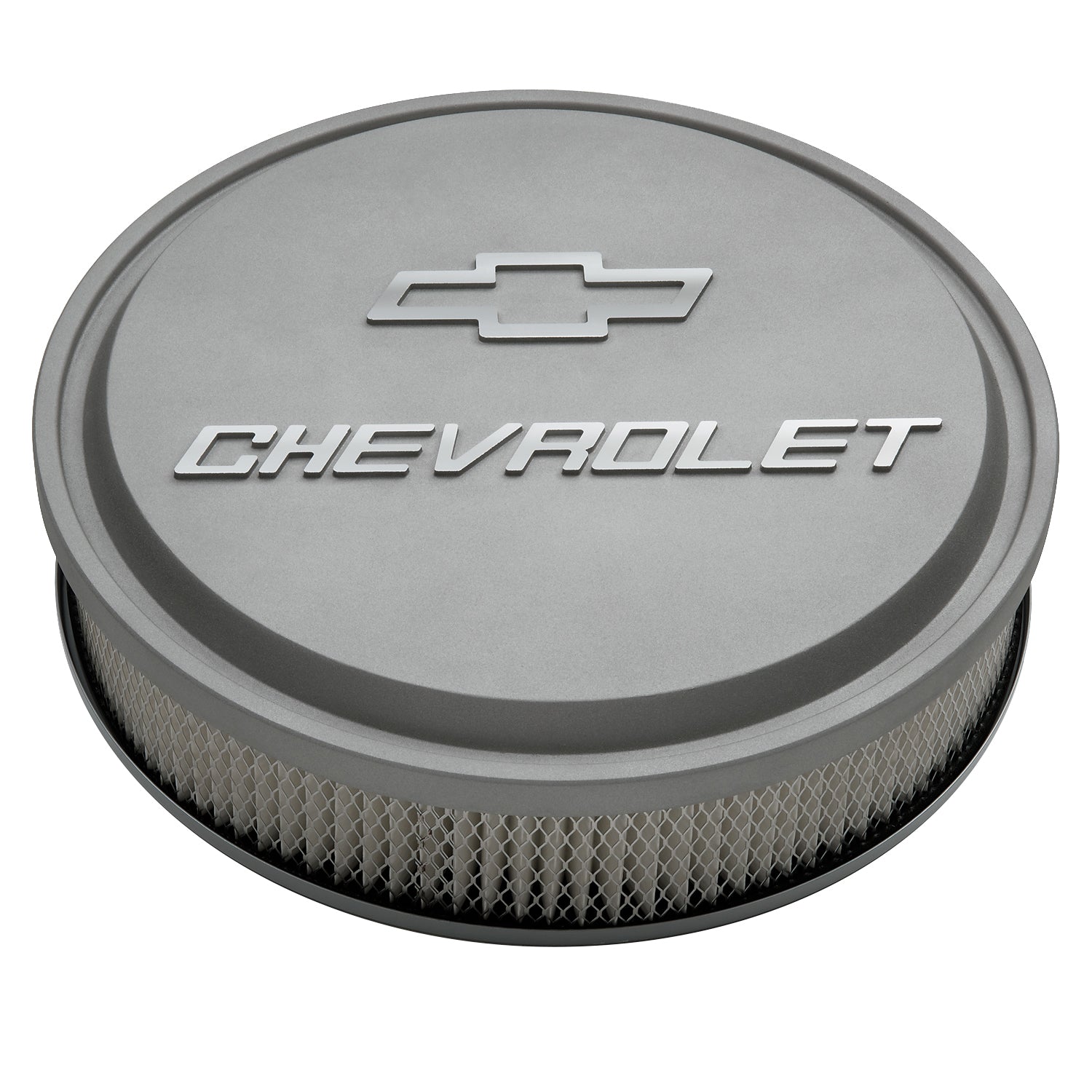 Proform 14" Air Cleaner Kit; Aluminum; Gray Crinkle; Raised Chevy and Bowtie Emblems 141-832