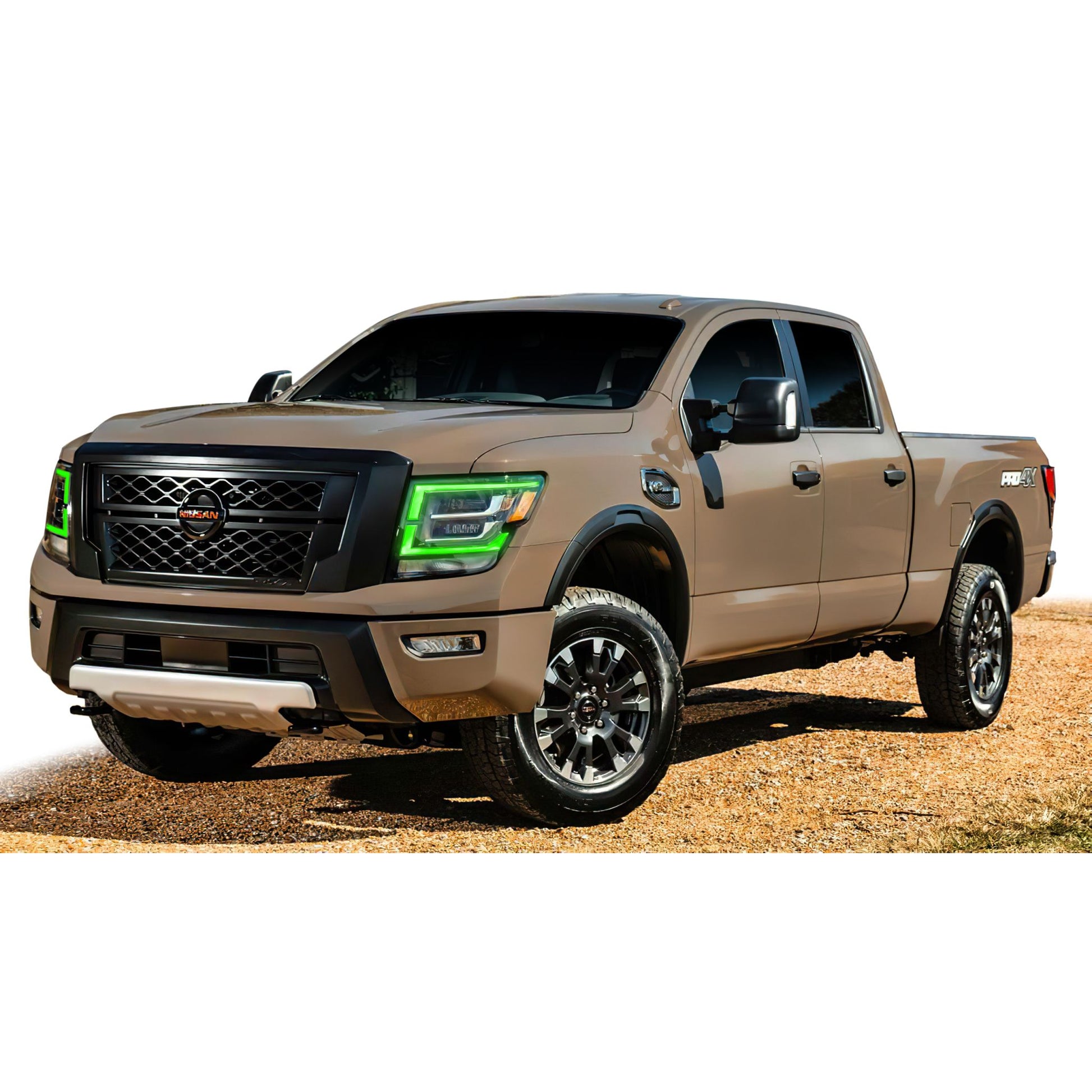Introducing the 2021-2022 Nissan Titan ColorSHIFT RGBW+A Headlight DRL Upgrade from ORACLE Lighting. This product is designed to fit Nissan Titan Models with the Factory LED DRL Option. Featuring our new high-performance RGB+W chips, this new kit allows you to utilize the existing DRL feature on your Titan Headlights and easily convert it to Color-Changing DRLs while maintaining a true White DRL. These replacement boards feature our traditional RGB ColorSHIFT technology along with an extra "White LED" which allows for truer white tones, a crisp white DRL color option and the ability to instantly switch over to normal DRL for road driving. These DRL boards can make hundreds of different colors, dozens of patterns, control the brightness, and even the speed of the functions as well! (With the use of a ColorSHIFT Controller) Give your Titan the attitude adjustment and stand out from the crowd with the new ORACLE ColorSHIFT RGB+W DRL Upgrade Kit! Fitment: Crew Cab PRO-4X Crew Cab Platinum Reserve