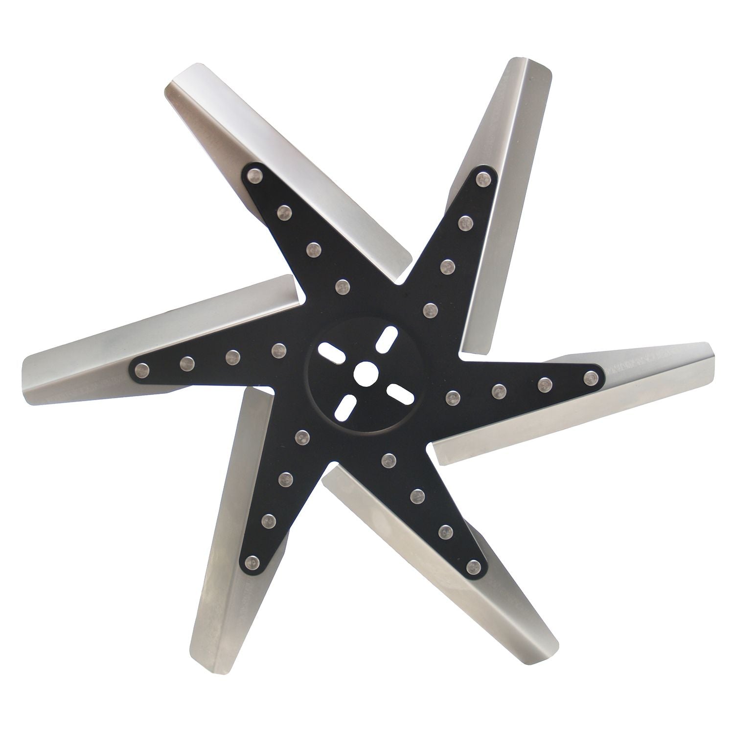 Our 18" high performance, reverse rotation flex fan features 6 stainless steel blades and a black powder coated hub and is rated for engine speeds up to 8,000 rpm. A perfect for limited space applications.