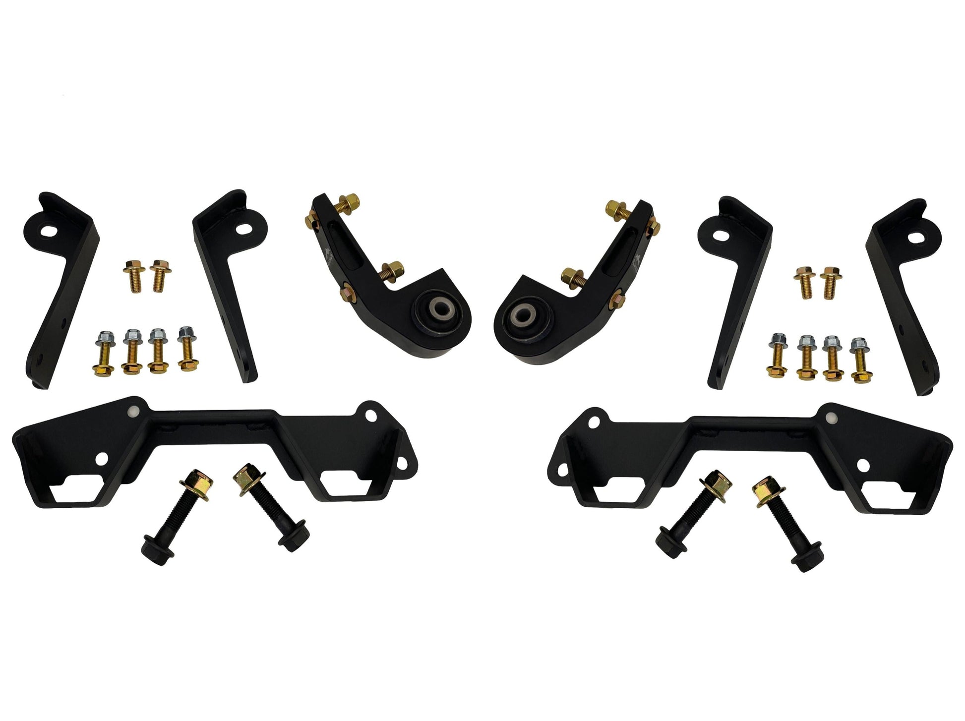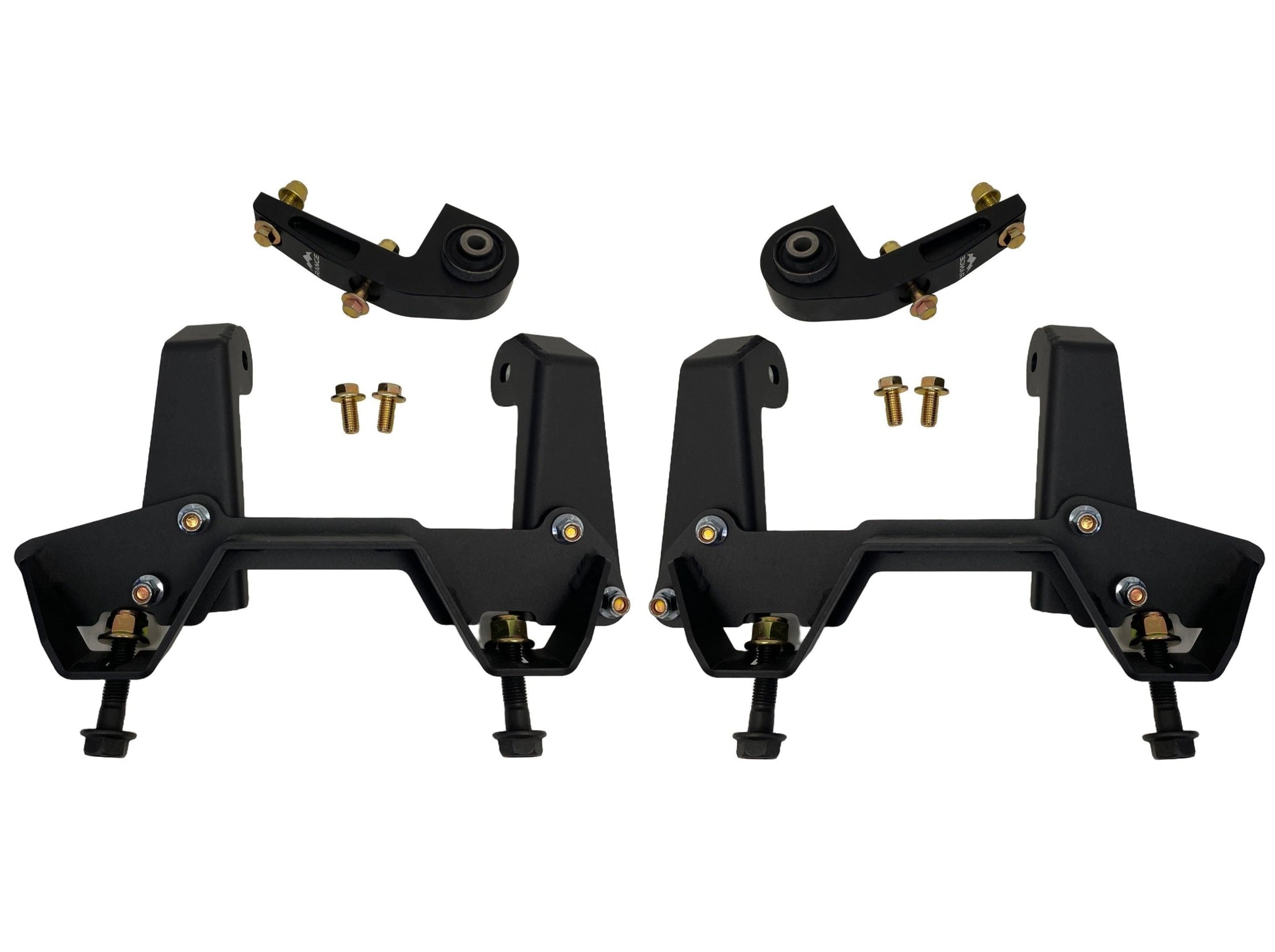 This bolt in kit is designed to mount the 2003-2011 Crown Victoria front suspension to trucks with 34” outside to outside frame rails. It does not require welding, only drilling holes. It stiffens the factory frame where the crossmember mounts and ties the Crown Victoria suspension securely to your frame. This kit contains all brackets and hardware necessary for install. You will need to cut/grind away your old front suspension brackets.