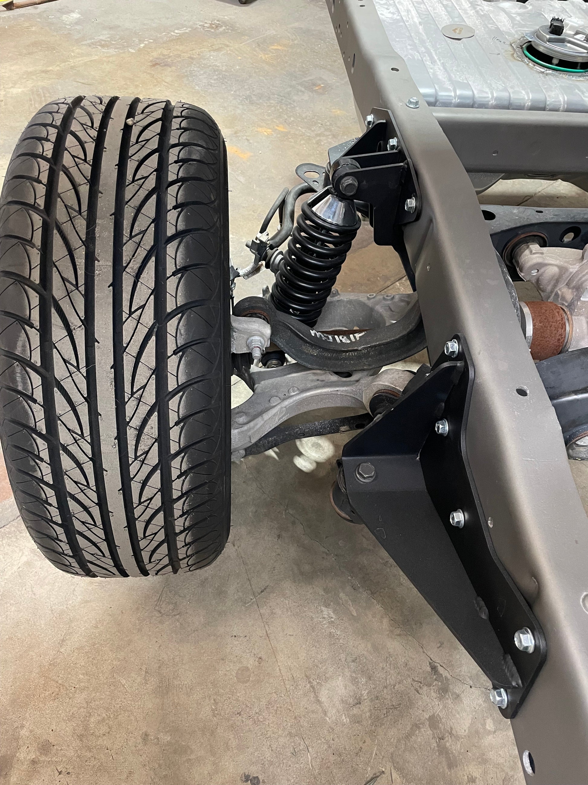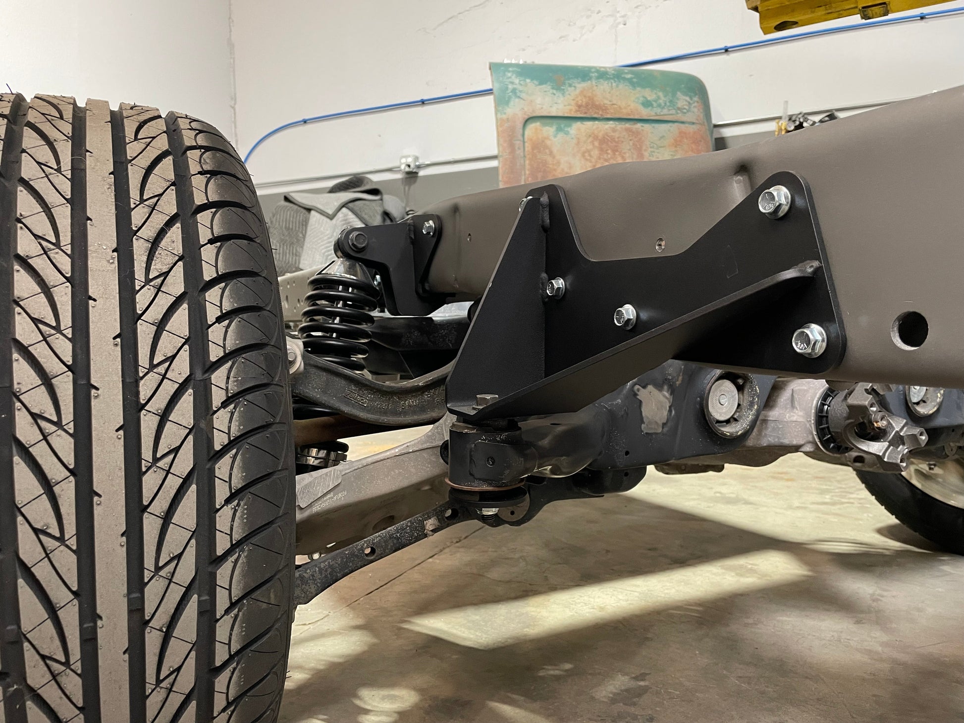 Kit contains all mounting brackets and hardware required to mount the 2014-2023 Mustang S-550 and 2024+ S-650 rear subframe to your F-100 frame. Coil-overs not included in kit.