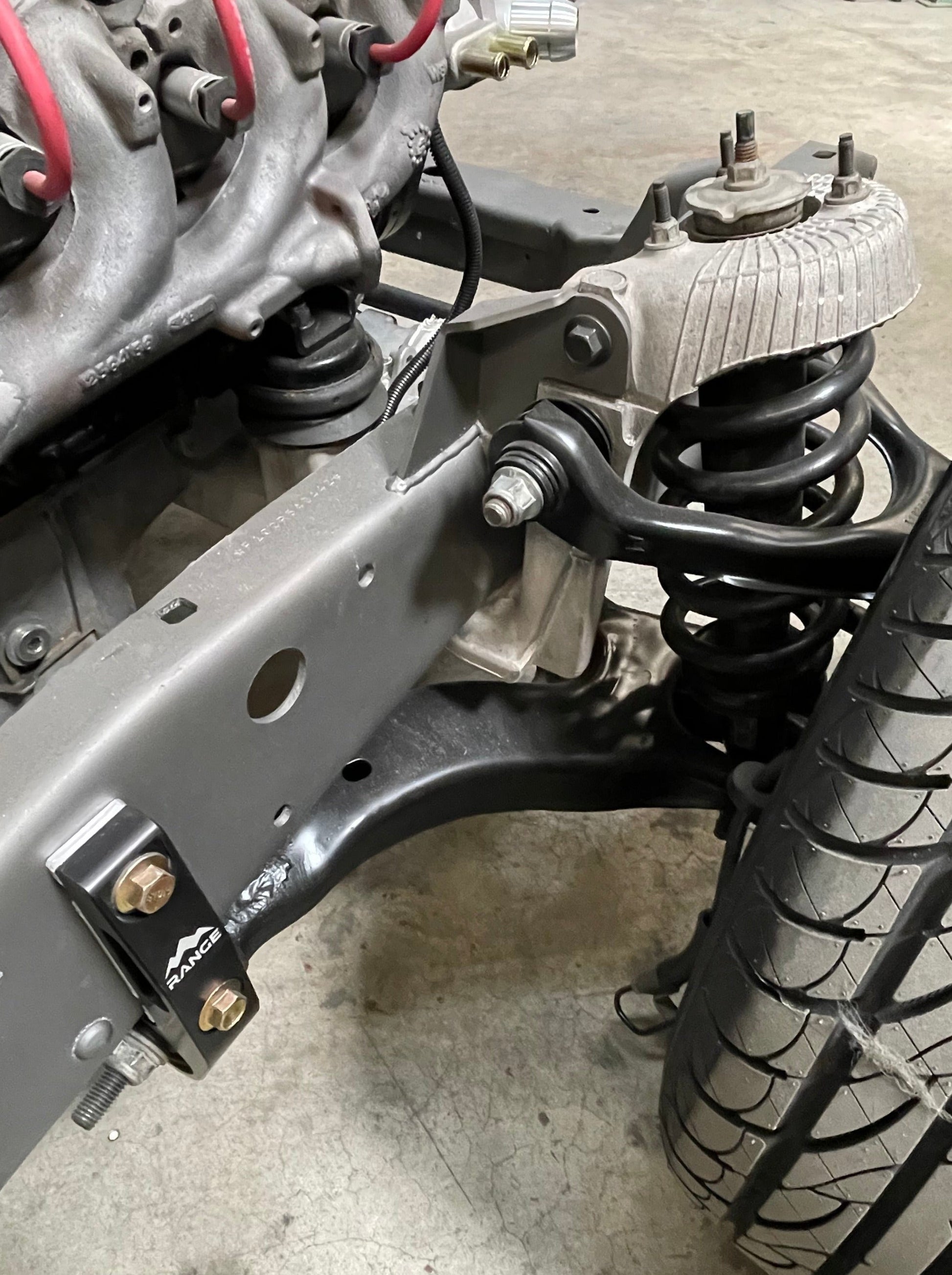 Mount the rear of the 2003-2011 Crown Victoria lower control arm to your 1953-1979 F-100 frame with this easy to install bolt-on kit. This mount is CNC machined from billet 6061-T6 aluminum and comes with pre-installed heavy duty rubber bushings (OEM durability and will never squeak or clunk). This kit uses the OEM control arm bushing from a 2011-2019 Ford explorer (BC85760PR). To install, drill two ½” holes in your frame rail to use supplied hardware to attach to frame. Use 2 shims per side to set your caster. This kit is a pair and contains and left and right side mount.