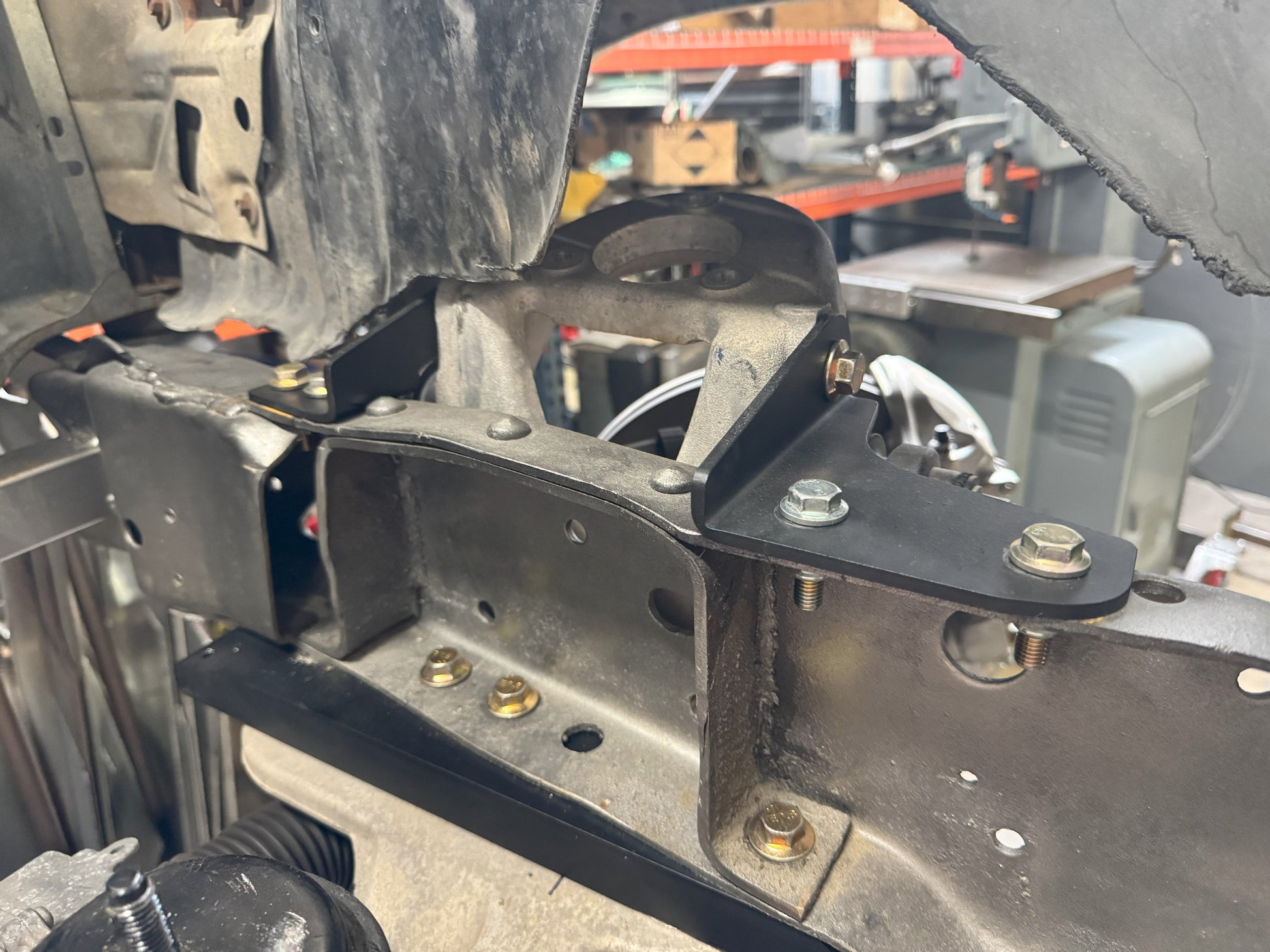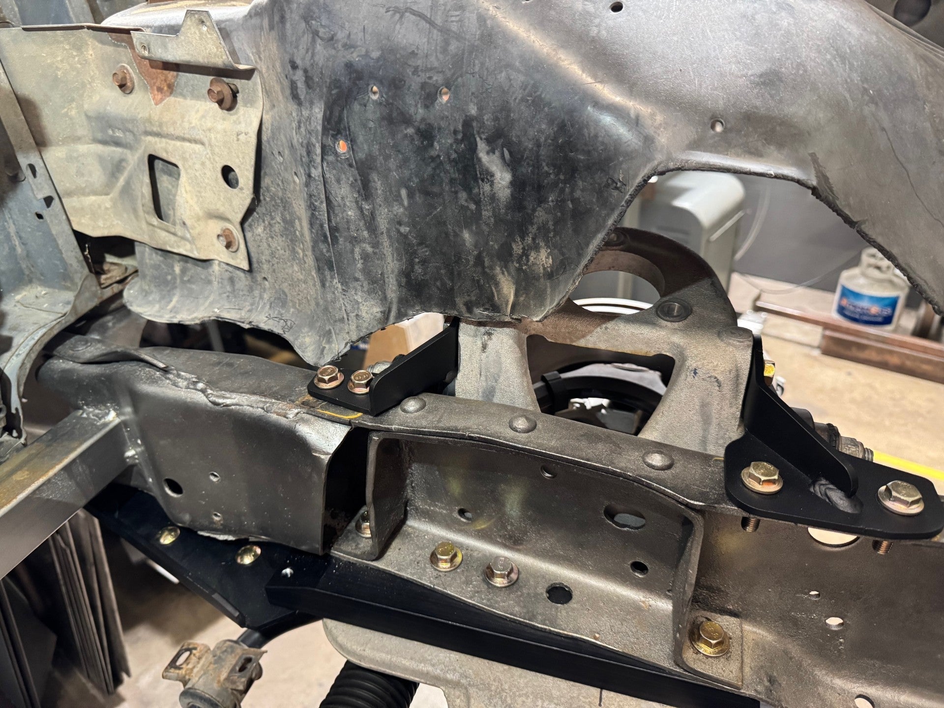 Cut the crossmember and spring towers out, make 1 clearance notch and bolt the suspension in with our kit.