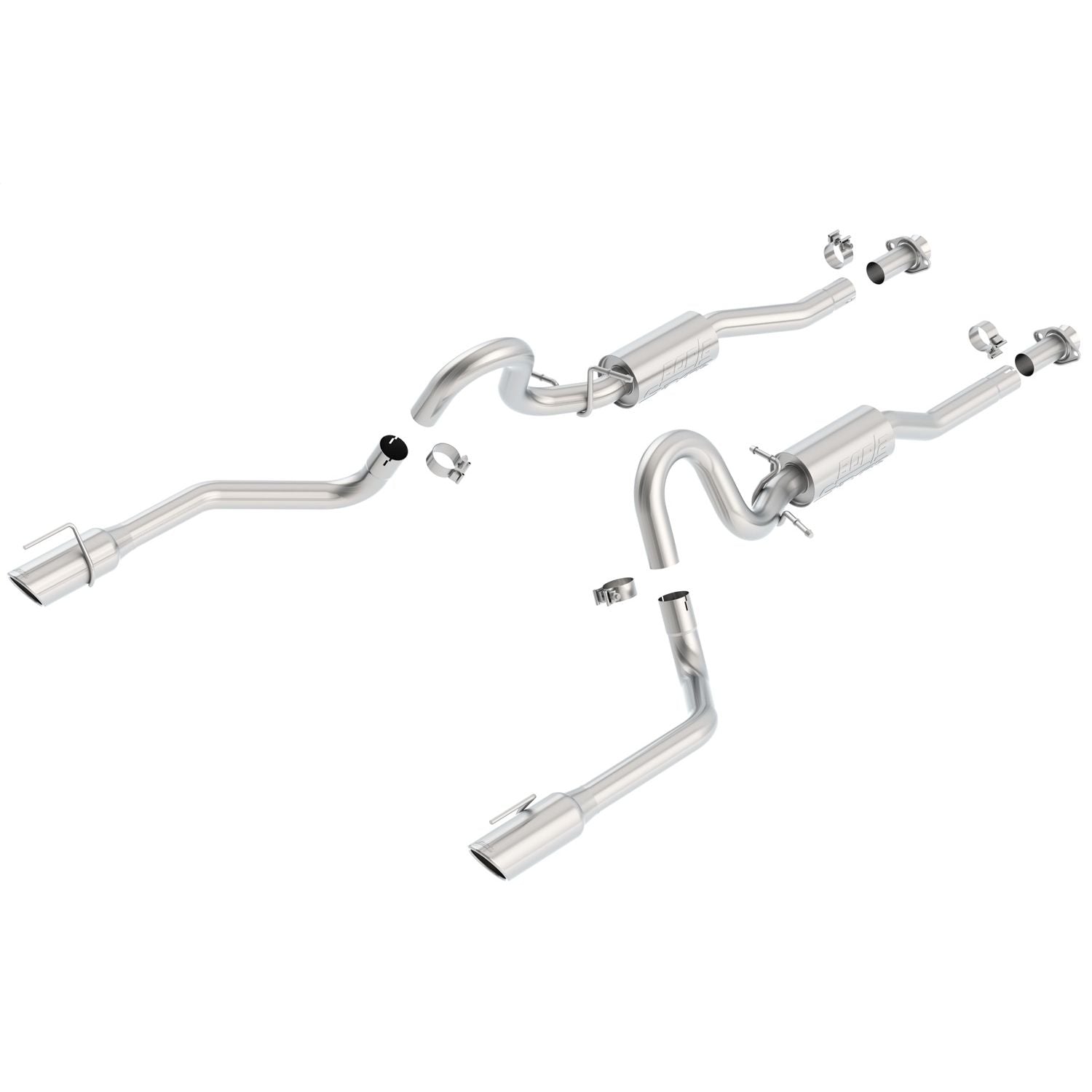 For 4 decades, Borla Exhaust has been the choice of Mustang experts, from the Cobra-R SVT Mustang to the Ford GT. Major players in the racing industry and leading tuners from Roush, Steeda, Saleen and Ford Racing to the Shelby 427 Cobra have relied on Borla. Borla experience and advance engineering produced the sexy "S- Type" exhaust with outstanding flow numbers that generates great power enhancements. These attributes, coupled with an aggressive sound of power and awesome big bright chrome on T-304 stainless steel tips, proclaim this Stang is all business. Airflow management and exhaust engineering is a science with which Borla has more experience than anyone in the exhaust aftermarket. The performance matches the famous Borla systems of the past but with a unique muffler and exhaust configuration canceling additional high frequency sound waves delivering a significant increase in CFM from the factory system which, as most engine builders will confirm, accounts for the dramatic power improvements. Perhaps more importantly, this added flow maximizes performance for other aftermarket enhancements installed on the Mustang because all Borla exhaust products are tuned for maximum output from any aftermarket performance upgrade. Borla the original pioneers of aerospace-grade T-304 stainless steel (superior to 409 or aluminized steel) free-flow exhaust utilizes patented award and race winning technology to deliver quality, sound, performance gains and enhanced fuel economy ? all with an easy bolt-on installation. Unsurpassed written Million-Mile Warranty.