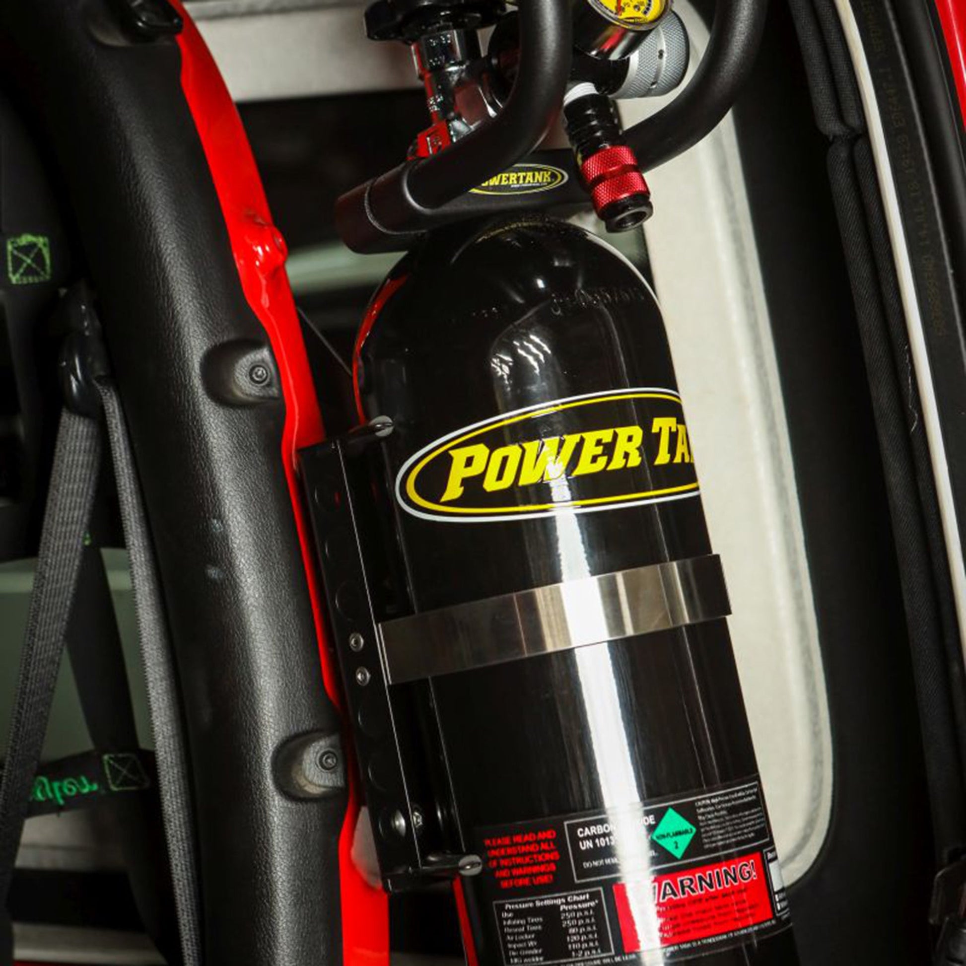 You asked, we answered. Here is our Sports Bar Mount for the Two Door JL Wrangler! This mount will not only mount your 5 or 10 lb. Power Tank in your two door, but it is an excellent use of space as it puts it up high, giving you as much floor space in your cargo area as possible.