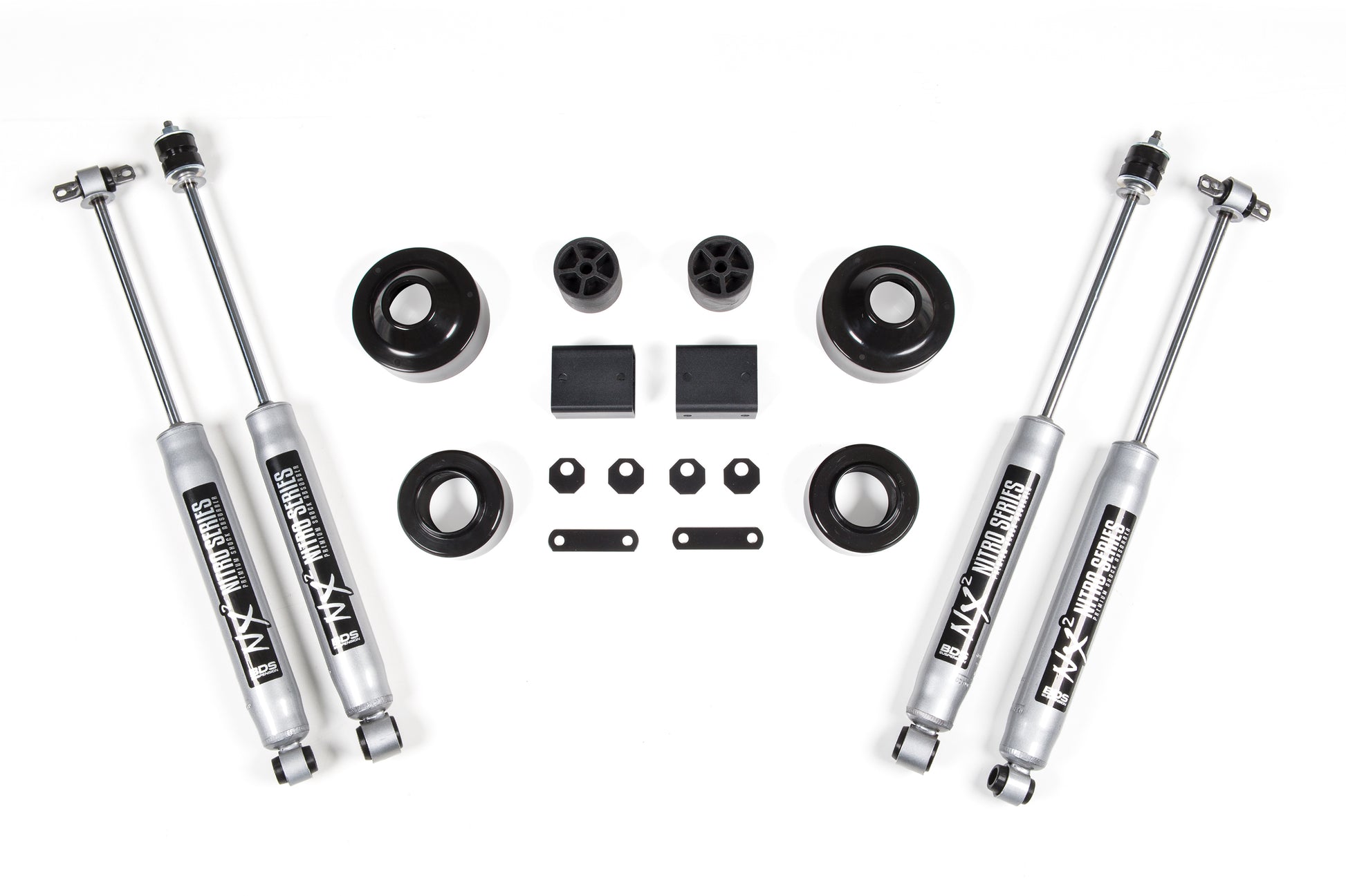 The lift kit includes four new urethane coil mounts bump stop extensions front octo-cam washers and your choice of specially tuned NX2 nitro series gas shocks or FOX 2.0 IFP performance series gas shocks to offer improved damper performance.