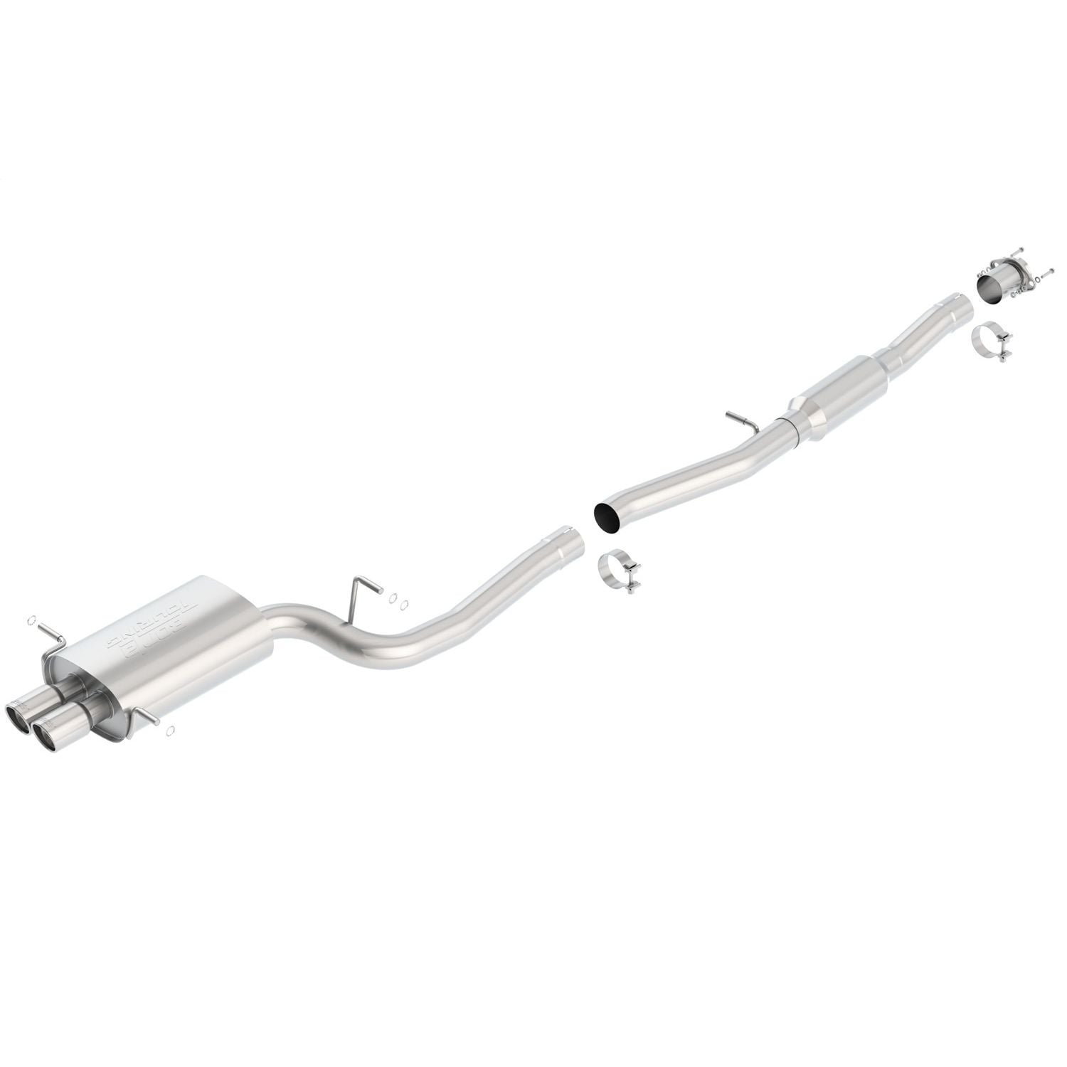 System features polished T-304 stainless steel tips. Borla Cat-Back & Axle-Back exhaust systems feature patented straight-through and multi-core technology designed to unleash hidden horsepower. Increased exhaust velocity adds power, driving excitement, fuel economy, and the distinctive Borla Sound of Power respected by motoring enthusiasts everywhere. Each system is built from premium T-304 stainless steel, superior to T-400 series knockoffs (such as 409), to give you the absolute best in performance and durability. Ultra-smooth mandrel bends ensure maximum flow & power, and precision computer-controlled CNC manufacturing ensures an accurate fit. Best of all, Borla stands behind every system with a Million-Mile Warranty. Just what you?d expect from the world?s most experienced (and most winning) exhaust brand.