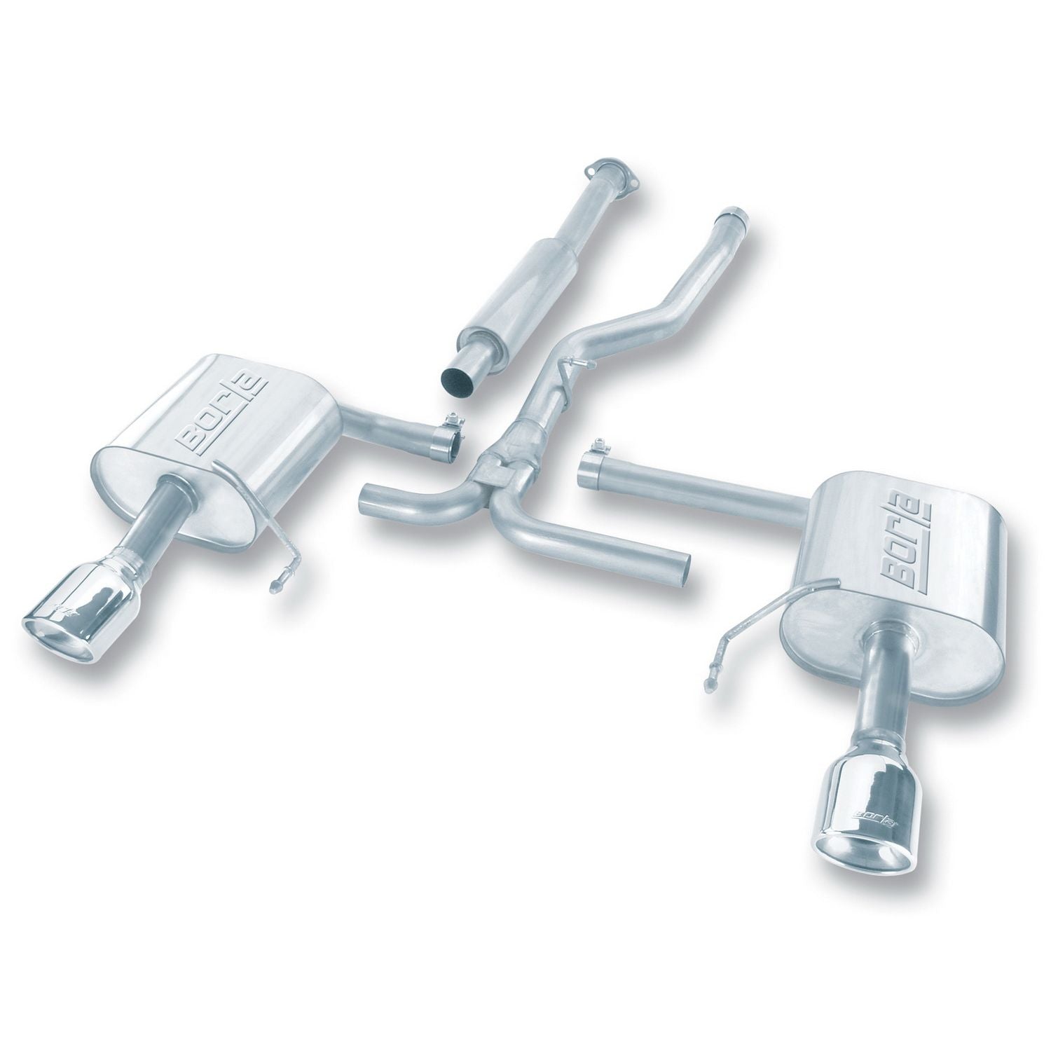 Borla Performance Industries has once again developed a unique performance exhaust for a Subaru. This time, the Borla R&D Team has engineered a bold dual exhaust system for the Legacy GT Turbo (PN 140123). Borla made a big splash in the sports compact aftermarket with their stainless steel Header and Cat-Back for the WRX, winning many performance shootouts. The Legacy GT Turbo with the 2.4L 4-cylinder engine is a natural for the Borla straight-through, free-breathing mufflers and smooth CNC mandrel bent high-quality T-304 austenitic stainless steel exhaust pipes. This split rear system exits with large polished T-304 stainless steel oval Borlaembossed rolled edge tips. Borla testing reveals power increases that most likely are a direct correlation to the increased air flow the Borla system exhibits. All this and 20% lighter than the stock system. A great performance exhaust with a powerful sound and the durability that has made Borla famous. When you deal with the high exhaust temperatures of turbocharged engines, the aerospace-bred Borla exhaust is like money in the bank. With credentials on the street and the track, it?s no accident so many serious performance enthusiasts choose Borla Performance Exhaust for their Subaru vehicles. Borla, the original pioneers of aircraft-grade high-quality T-304 austenitic stainless steel (superior to T-409 or aluminized steel) free-flow exhaust utilizes its patented award and race winning technology to deliver quality, sound, performance gains and enhanced fuel economy ? all with an easy bolt-on installation. All Borla street products carry the famous Borla written million-mile warranty.
