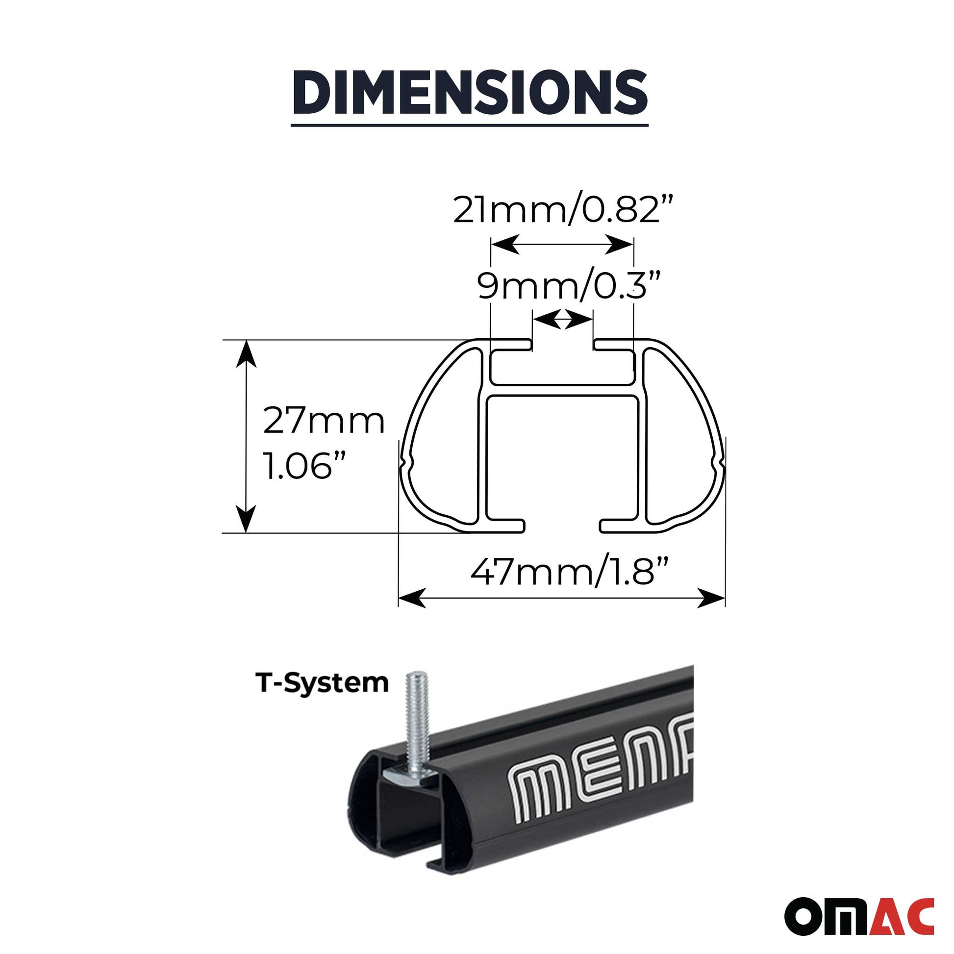 OMAC high-quality aluminum roof racks with European design & style. Its aerodynamic design, anti-theft lock, and easy installation make it a perfect fit for your vehicle. This removable and lightweight rack is ultra durable, waterproof, and wind resistant. With T-tracks and low noise, it accommodates bike and ski carriers. It's also compatible with roof cargo boxes, luggage, and kayak carriers. Experience the versatility of our multifunctional cross bars for all your travel needs.