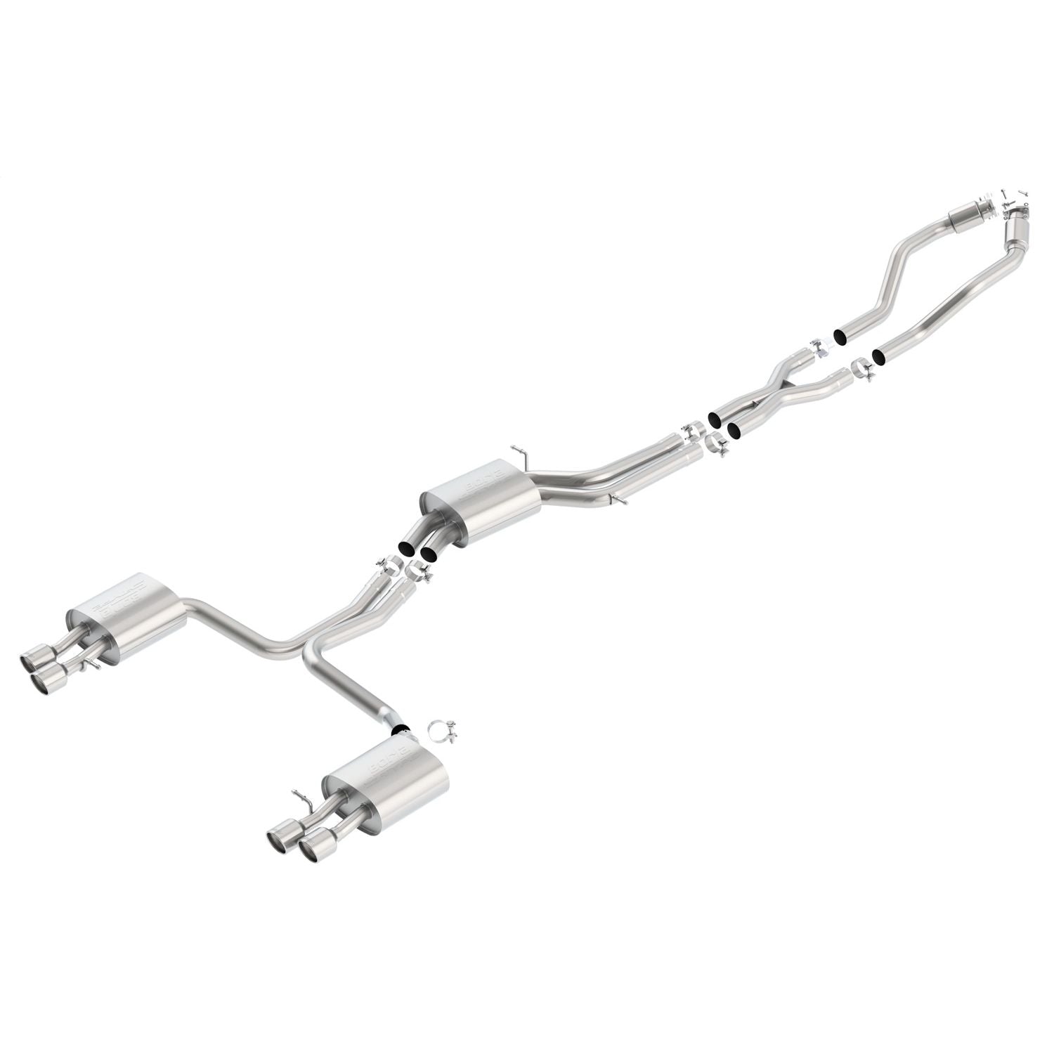 Fits S4 with or WITHOUT Sport Differential. System contains a merge X-Pipe for increased performance and improved sound. Features polished T-304 stainless steel tips. Borla Cat-Back & Axle-Back exhaust systems feature patented straight-through and multi-core technology designed to unleash hidden horsepower. Increased exhaust velocity adds power, driving excitement, fuel economy, and the distinctive Borla Sound of Power respected by motoring enthusiasts everywhere. Each system is built from premium T-304 stainless steel, superior to T-400 series knockoffs (such as 409), to give you the absolute best in performance and durability. Ultra-smooth mandrel bends ensure maximum flow & power, and precision computer numerical control (CNC) manufacturing ensures an accurate fit. Best of all, Borla stands behind every system with a Million-Mile Warranty. Just what you?d expect from the world?s most experienced (and most winning) exhaust brand.