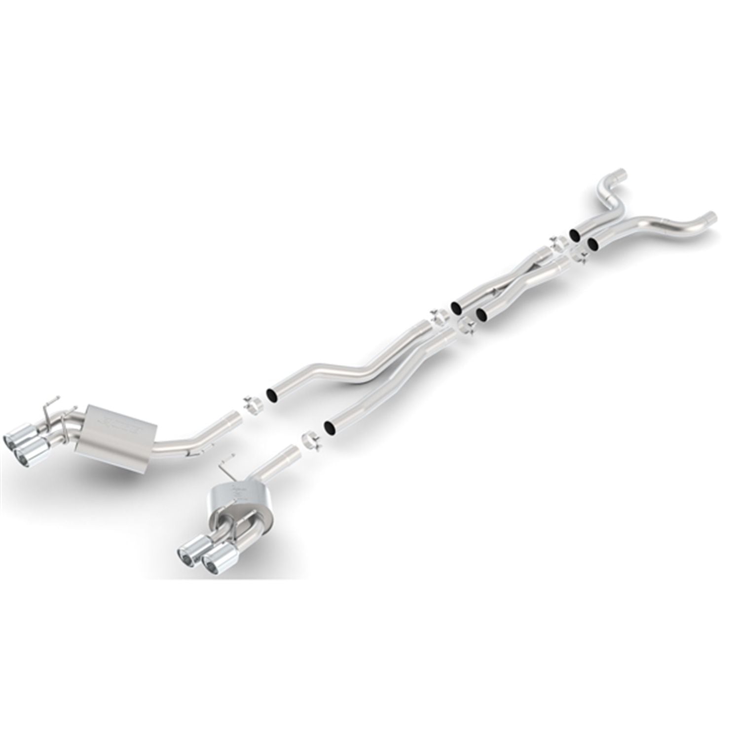 System features a X-Pipe for increased performance and improved sound. Does NOT include the Dual Mode valves. Can be used on used on SS models that have a ZL1 bumper. System features polished T-304 stainless steel tips. Borla Cat-Back & Axle-Back exhaust systems feature patented straight-through and multi-core technology designed to unleash hidden horsepower. Increased exhaust velocity adds power, driving excitement, fuel economy, and the distinctive Borla Sound of Power respected by motoring enthusiasts everywhere. Each system is built from premium T-304 stainless steel, superior to T-400 series knockoffs (such as 409), to give you the absolute best in performance and durability. Ultra-smooth mandrel bends ensure maximum flow & power, and precision computer-controlled CNC manufacturing ensures an accurate fit. Best of all, Borla stands behind every system with a Million-Mile Warranty. Just what you?d expect from the world?s most experienced (and most winning) exhaust brand.