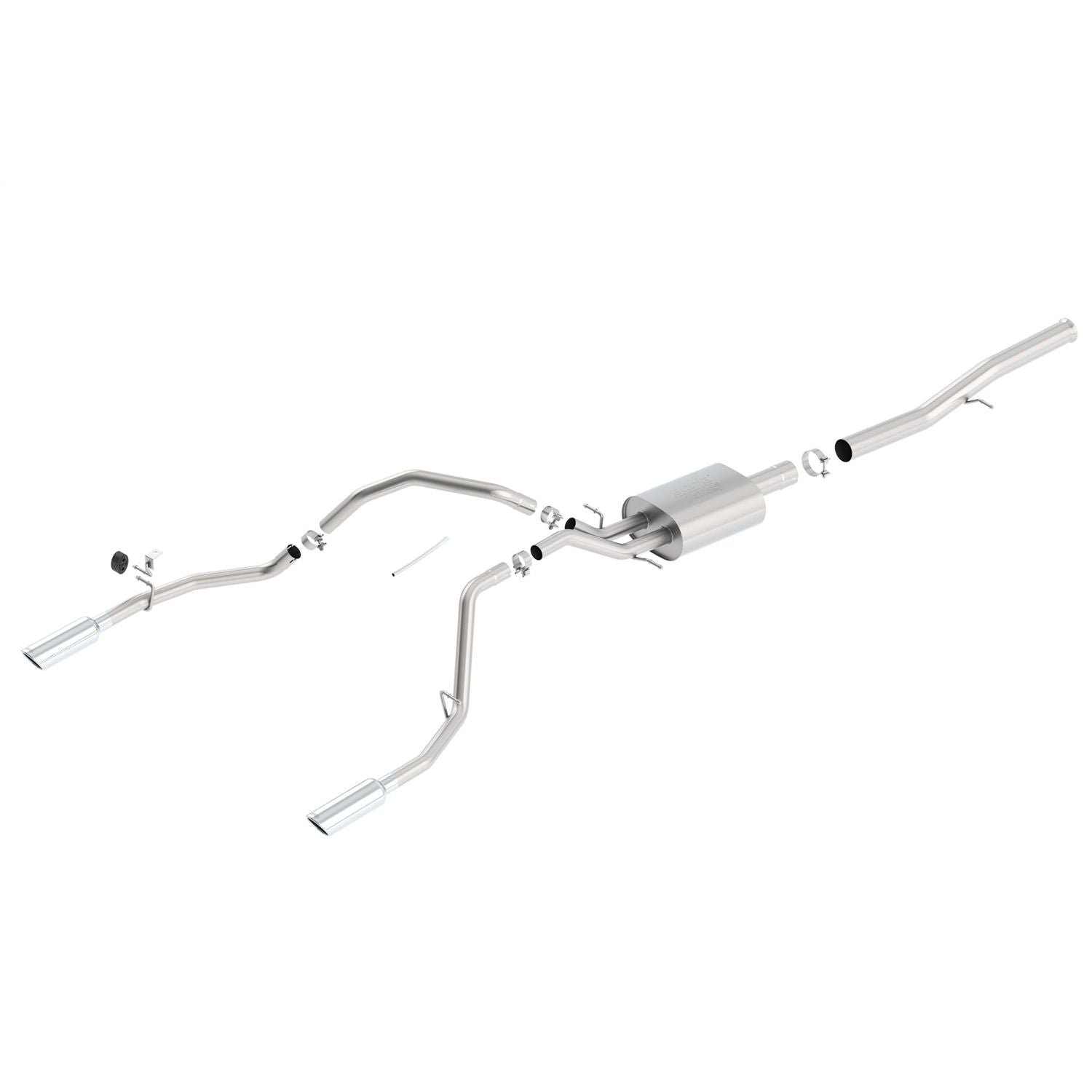 Features bright chrome on T-304 stainless steel tips. Borla Cat-Back & Axle-Back multi-core technology is designed to unleash hidden horsepower. Increased exhaust velocity adds power, driving excitement, fuel economy, and the distinctive Borla Sound of Power respected by motoring enthusiasts everywhere. Each system is built from premium T-304 stainless steel, superior to T-400 series knockoffs (such as 409), to give you the absolute best in performance and durability. Ultra-smooth mandrel bends ensure maximum flow & power, and precision computer-controlled CNC manufacturing ensures an accurate fit. Best of all, Borla stands behind every system with a Million-Mile Warranty. Just what you?d expect from the world?s most experienced (and most winning) exhaust brand.