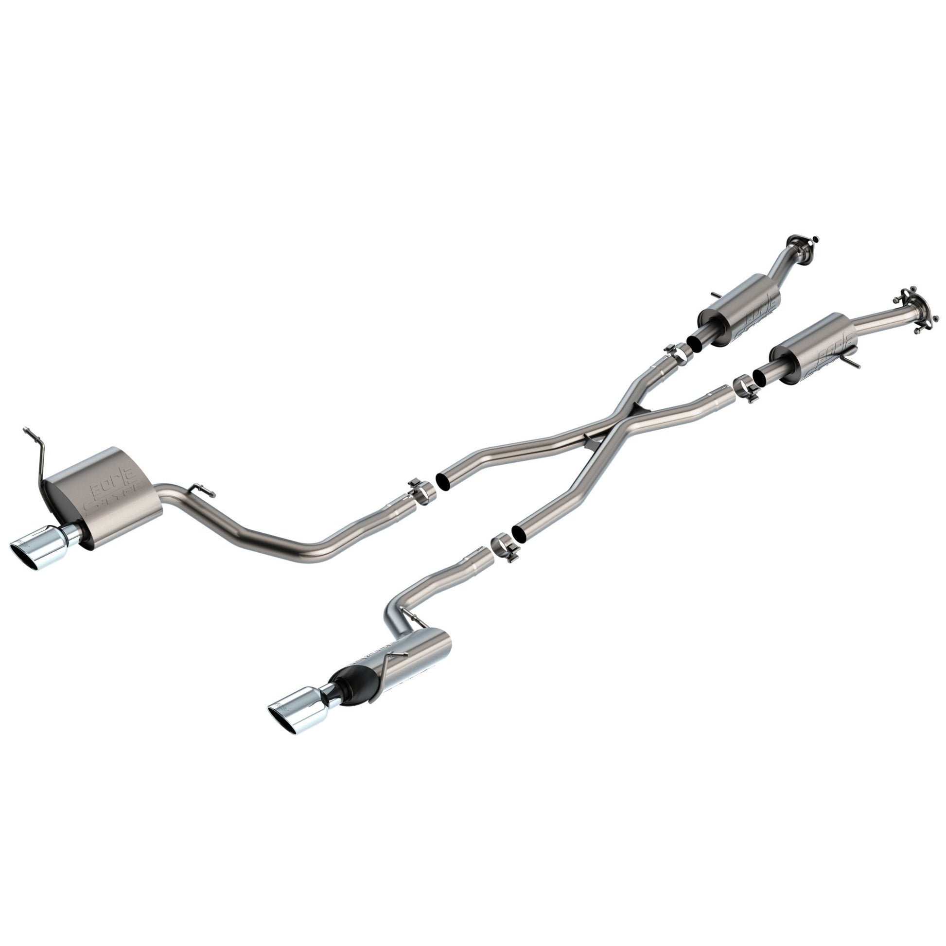 The 140835 Borla Cat-Back system is designed specifically for the Jeep Grand Cherokee equipped with the 3.6L V6 engine. It includes a X-Pipe which provides the best all round performance and custom sound, and uses only high quality T-304 stainless steel construction. Ultra-smooth mandrel bends ensure maximum flow & power, and precision computer numerical control (CNC) manufacturing ensures an accurate fit. This system features the ?S-Type? sound level and bright chrome on T-304 stainless steel tips. Black chrome tips are also available on system 140835BC.