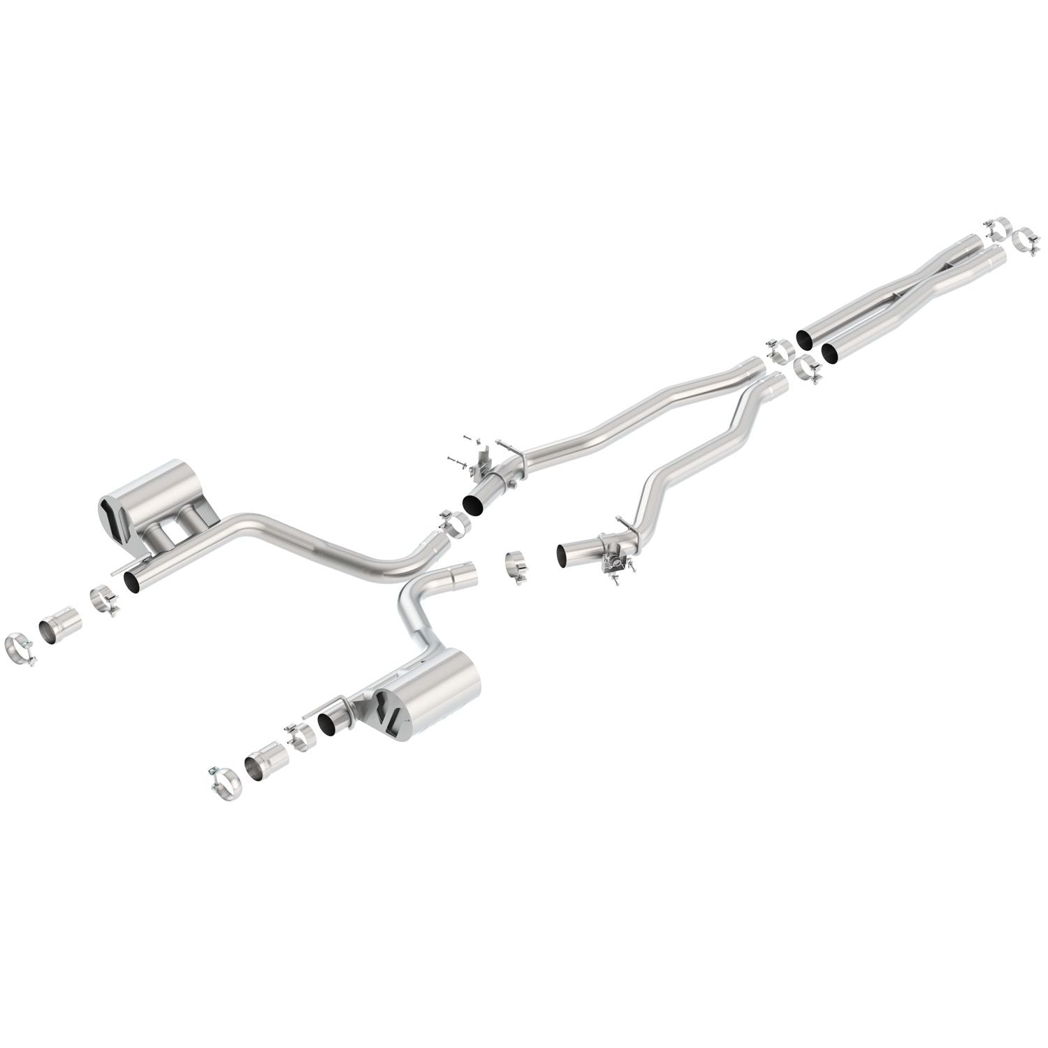 System contains a merge X-Pipe for increased performance and improved sound. This system includes active MDS (Multi-Displacement System) valves. This system does NOT include tips. Use factory valance / tips. BORLA(r) Cat-Back(tm) & Axle-Back exhaust systems feature patented straight-through and multi-core technology to unleash hidden horsepower. Increased exhaust velocity adds power, driving excitement, fuel economy, and the distinctive BORLA(r) Sound of Power respected by motoring enthusiasts everywhere. Each system is built from premium T-304 austenitic stainless steel, superior to T-400 series knockoffs (such as 409), to give you the absolute best in performance and durability. Ultra-smooth mandrel bends ensure maximum flow & power, and precision computer-controlled CNC manufacturing ensures an accurate fit. Best of all, BORLA(r) stands behind every system with a Million-Mile Warranty. Just what you'd expect from the world's most experienced (and most winning) exhaust brand.
