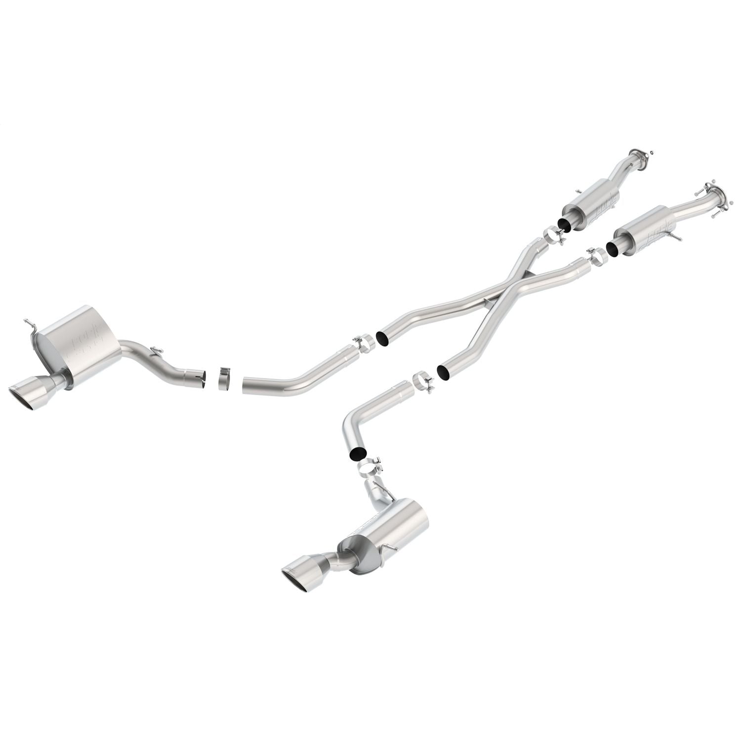 This system features bright chrome on T-304 stainless steel tips. Borla Cat-Back & Axle-Back exhaust systems feature patented straight-through and multi-core technology designed to unleash hidden horsepower. Increased exhaust velocity adds power, driving excitement, fuel economy, and the distinctive Borla Sound of Power respected by motoring enthusiasts everywhere. Each system is built from premium T-304 stainless steel, superior to T-400 series knockoffs (such as 409), to give you the absolute best in performance and durability. Ultra-smooth mandrel bends ensure maximum flow & power, and precision computer-controlled CNC manufacturing ensures an accurate fit. Best of all, Borla stands behind every system with a Million-Mile Warranty. Just what you?d expect from the world?s most experienced (and most winning) exhaust brand.