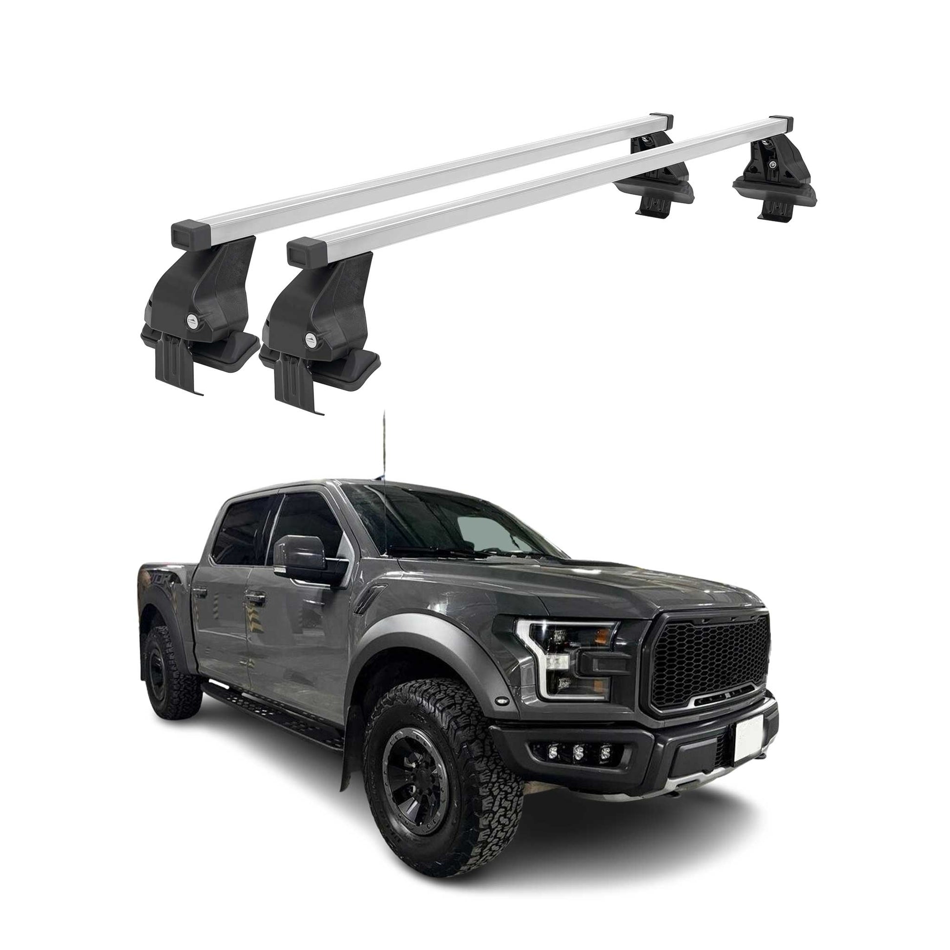 2015-2026 Ford F-150 SuperCrew Cab Roof Rack Cross Bars Silver