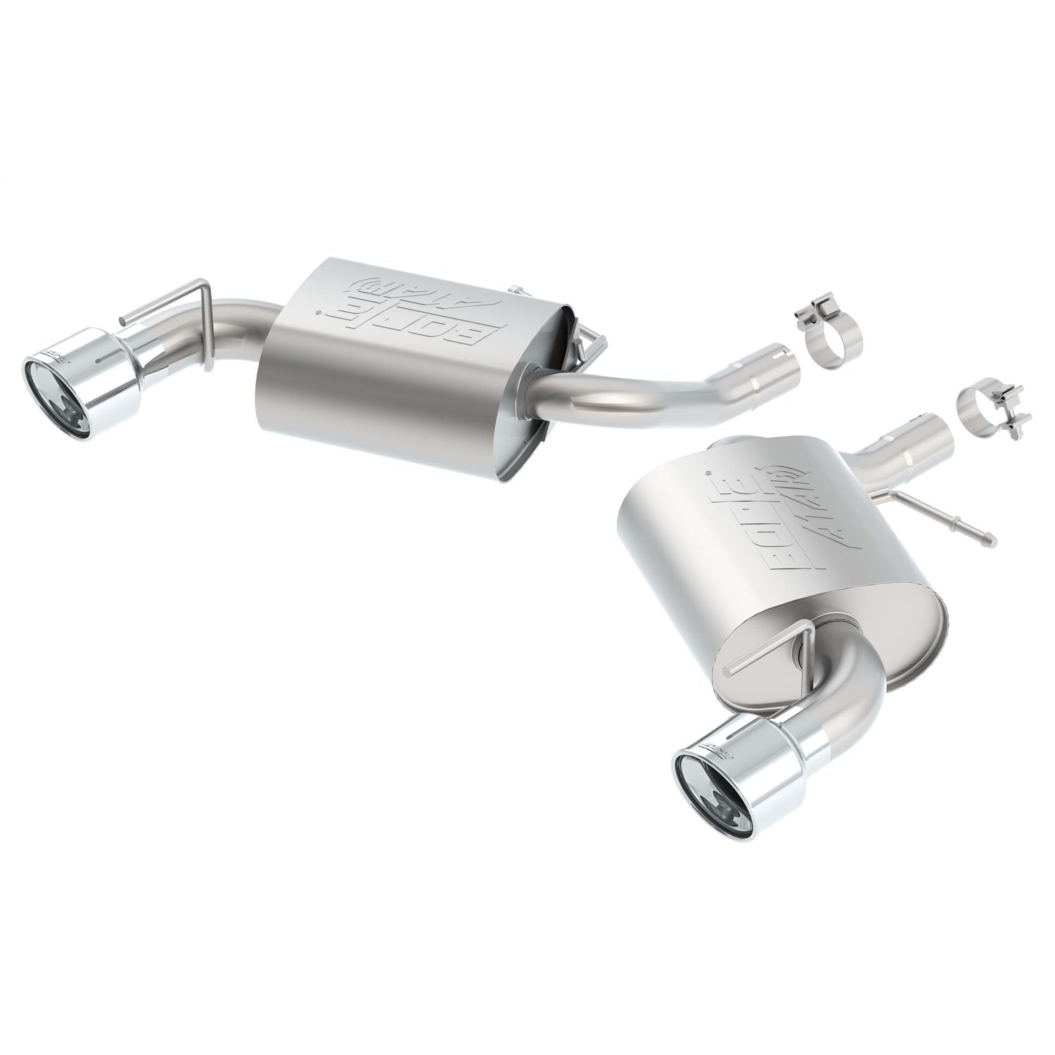 System features polished T-304 stainless steel tips. Borla Cat-Back & Axle-Back multi-core technology is designed to unleash hidden horsepower. Increased exhaust velocity adds power, driving excitement, fuel economy, and the distinctive Borla Sound of Power respected by motoring enthusiasts everywhere. Each system is built from premium T-304 stainless steel, superior to T-400 series knockoffs (such as 409), to give you the absolute best in performance and durability. Ultra-smooth mandrel bends ensure maximum flow & power, and precision computer numerical control (CNC)manufacturing ensures an accurate fit. Best of all, Borla stands behind every system with a Million-Mile Warranty. Just what you?d expect from the world?s most experienced (and most winning) exhaust brand.