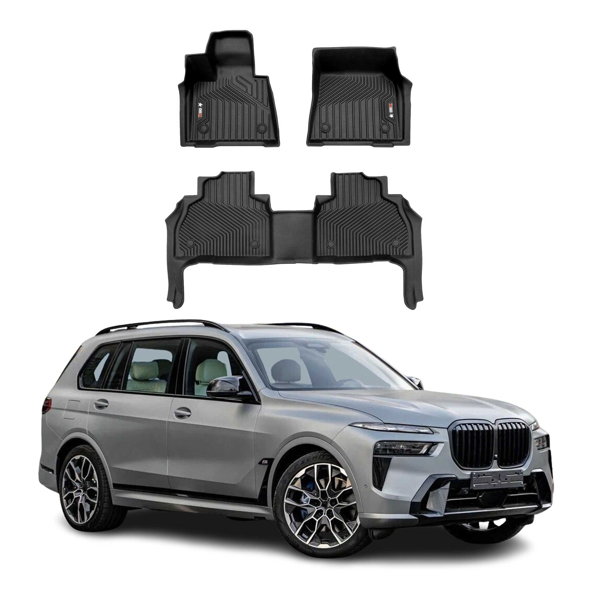 2019-2025 BMW X7 G07 Premium Floor Mats Liners 7 Seats First and Second Row Set Black
