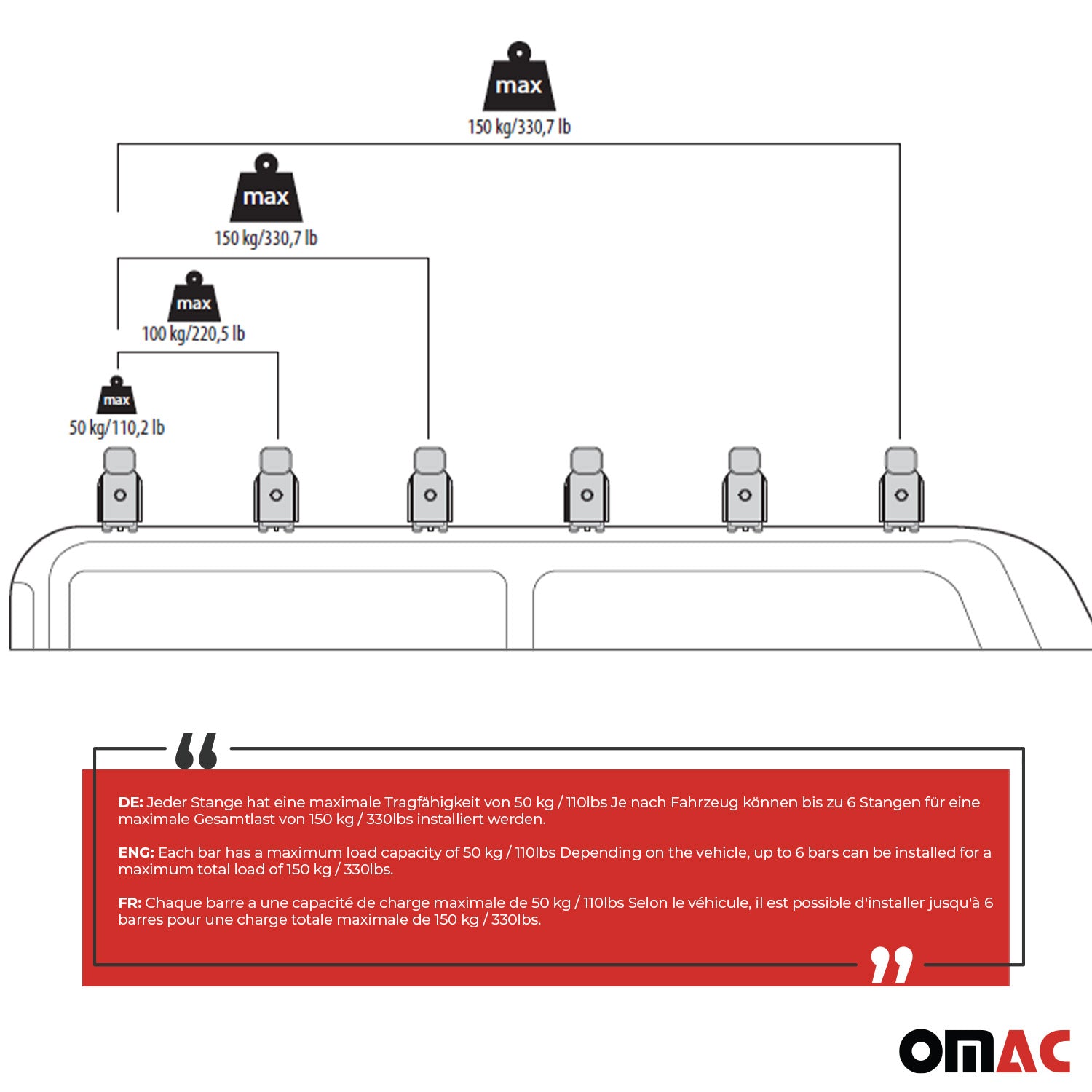 OMAC high-quality aluminum roof racks with European design & style. Its aerodynamic design and easy installation make it a perfect fit for your vehicle. This removable and lightweight rack is ultra durable, waterproof, and wind resistant. With low noise, it accommodates bike and ski carriers. It's also compatible with roof cargo boxes, luggage, and kayak carriers. Experience the versatility of our multifunctional cross bars for all your travel needs.