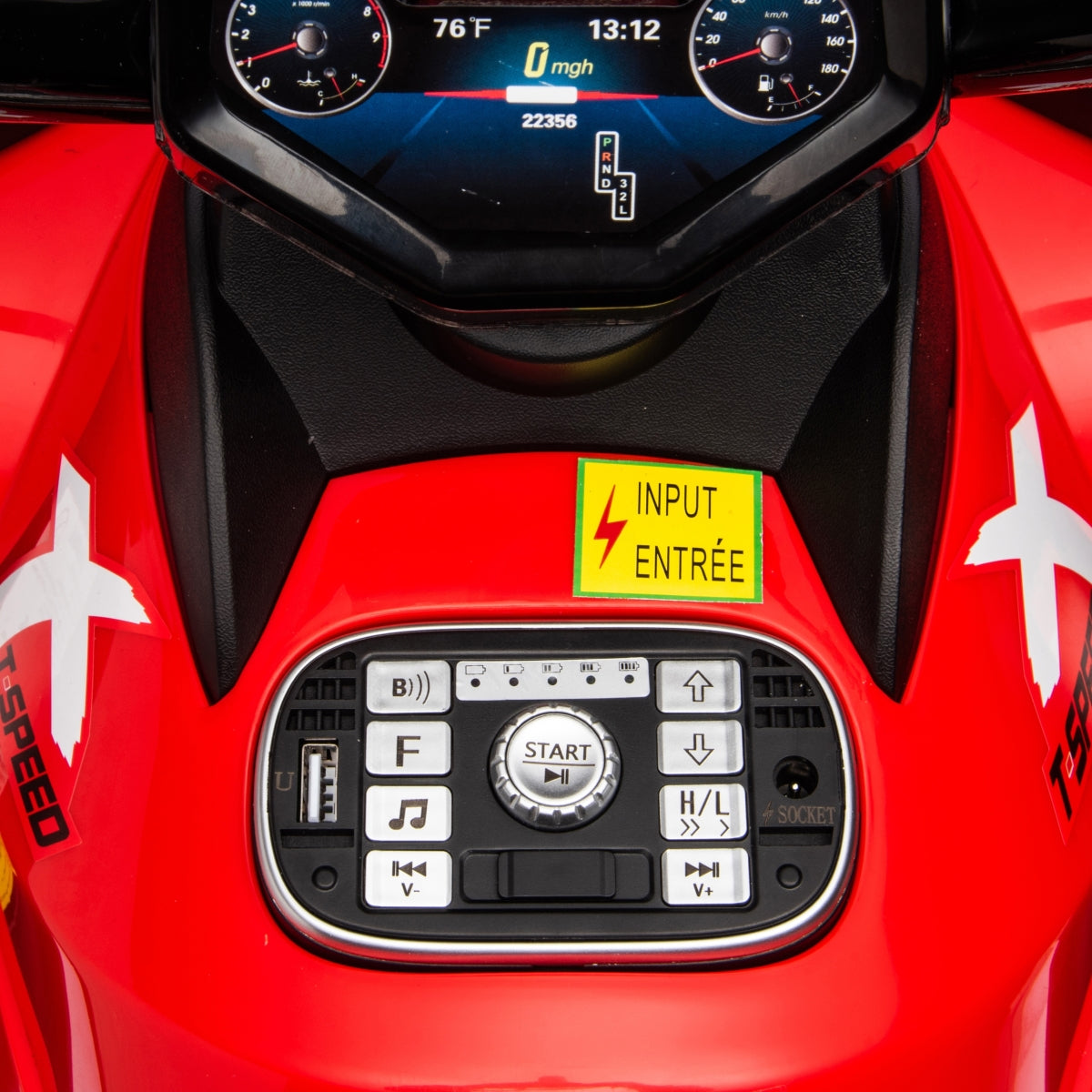 - Bluetooth + USB + Aux: This ATV comes with Bluetooth, USB, and Aux connectivity options, allowing your child to listen to their favorite music or audio books while exploring the outdoors on their ATV. Your kids can listen to their favorite songs, audiobooks, or even connect their phones or tablets to the ATV and enjoy a fun and adventurous ride.