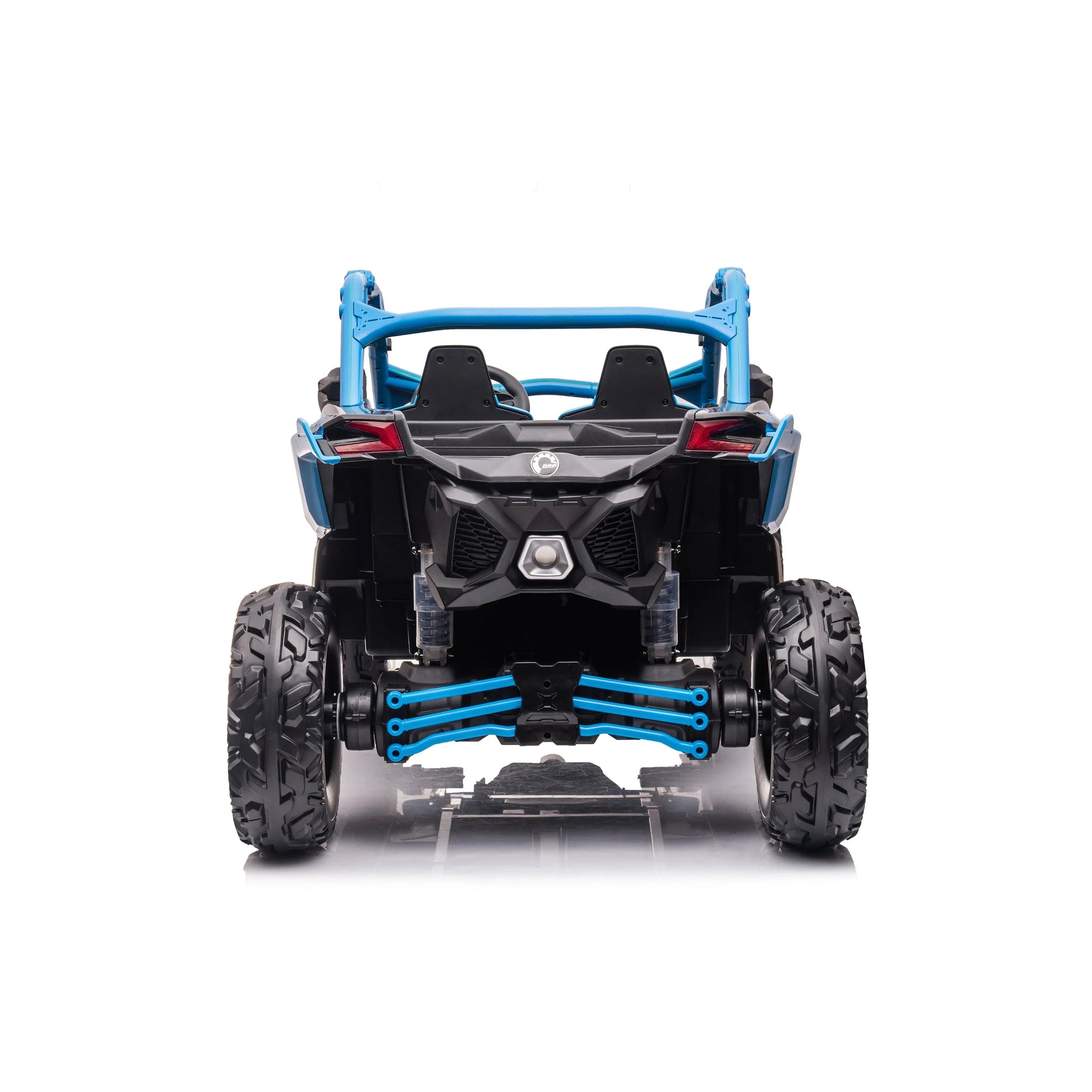 Get the whole family ready for a wildly fun ride with the 24Vx2 4x4 Can Am Maverick 2 Seater Ride on UTV for Kids! Make family rides more fun than ever with the 24Vx2 4x4 Can Am Maverick! Get ready for a safe and exciting ride with your little one. Enjoy the bump-free ride with the EVA tires, stay safe on the road with the LED lights, and control your little one’s speed with the parental remote control. Plug in your favorite tunes with the Mp3 + USB + Aux-in feature and make memories in the comfortable leather seat. Get your little one ready for their adventure with the 24Vx2 4x4 Can Am Maverick!