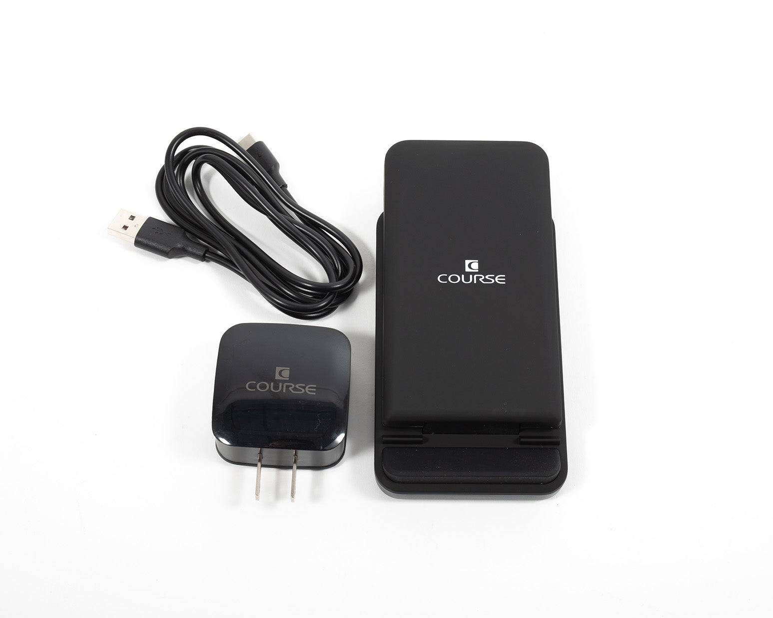 Enhance your productivity with the Course Motorsports 3 in 1 Foldable Charger Stand. Designed for convenience, it allows you to charge your phone, watch, and earphones simultaneously. The included QC3.0 wall adapter provides up to 15W of power, ensuring fast and efficient charging. Ideal for office desks or bedside tables, it also holds your phone at the perfect angle for conference calls. Compatible with most QI-enabled devices, this charger stand is a must-have for staying organized and powered up.