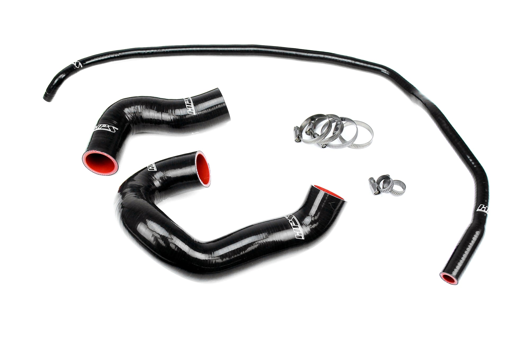 This HPS High Temp 3-ply Reinforced Silicone Radiator Hose Kit is designed to replace stock OEM rubber upper radiator, lower radiator, and coolant tank hoses that weaken over and fail over time. With premium quality silicone and performance inspired design, this coolant hose kit can withstand the harsh, high temperature and high pressure operating conditions under the hood through a wide range of driving conditions. HPS silicone hose kits have all the correct bends and dimensions to fit perfectly as replacements for OEM rubber coolant hoses. Compared to the universal hoses from the local auto store, HPS silicone hose kits are much easier to work with. Maximum temperature rating: 350 degrees Fahrenheit. 100% stainless steel embossed hose clamps are included for easy installation.