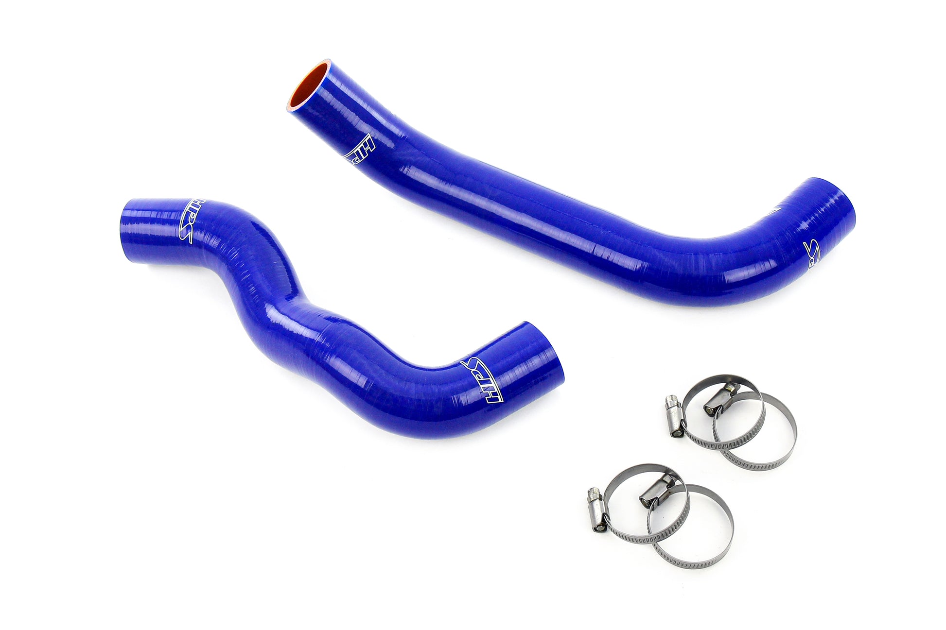 This HPS High Temp 3-ply Reinforced Silicone Radiator Coolant Hose Kit is designed to replace stock OEM rubber upper and lower radiator hoses which weaken and fail over time. With premium quality silicone and race inspired design, this coolant hose kit can withstand the harsh, high temperature and high pressure operating conditions under the hood through a wide range of driving conditions. HPS silicone hose kits have all the correct bends and dimensions to perfectly fit as replacements for OEM rubber coolant hoses. Compared to the universal hoses from the local auto store, HPS silicone hose kits are much easier to work with. Maximum temperature rating: 350 degrees Fahrenheit. 100% stainless steel embossed hose clamps are included for easy installation.