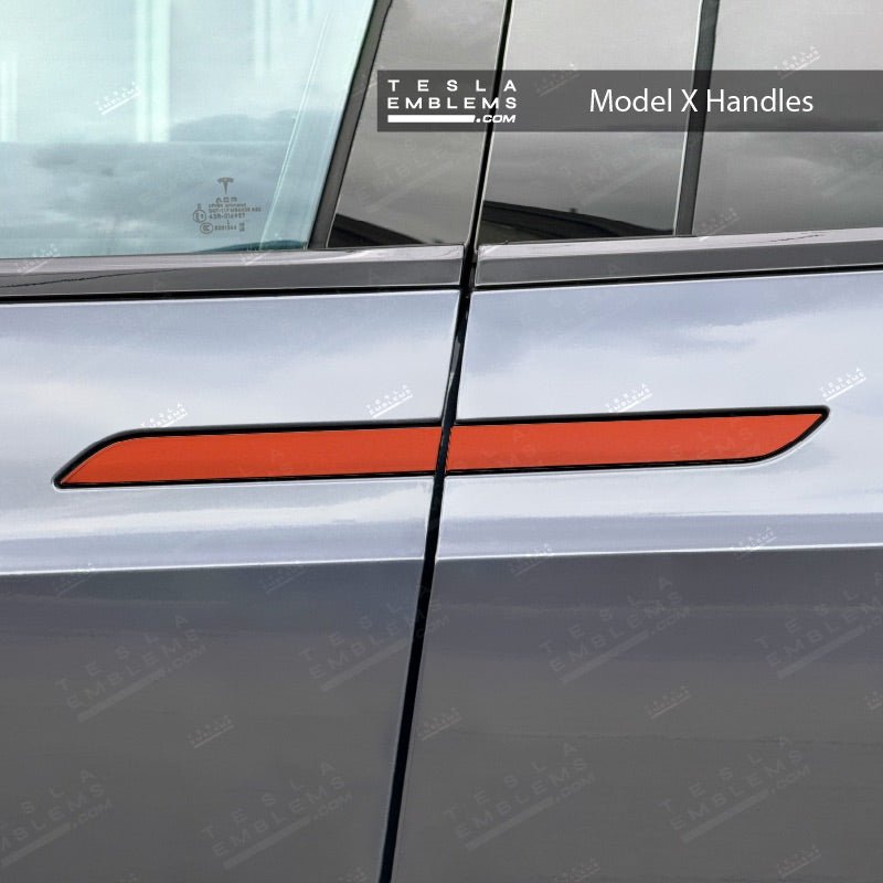 Upgrade your Tesla's door handles with custom 3M Matte Red decals. This color is more on the orange spectrum of reds.