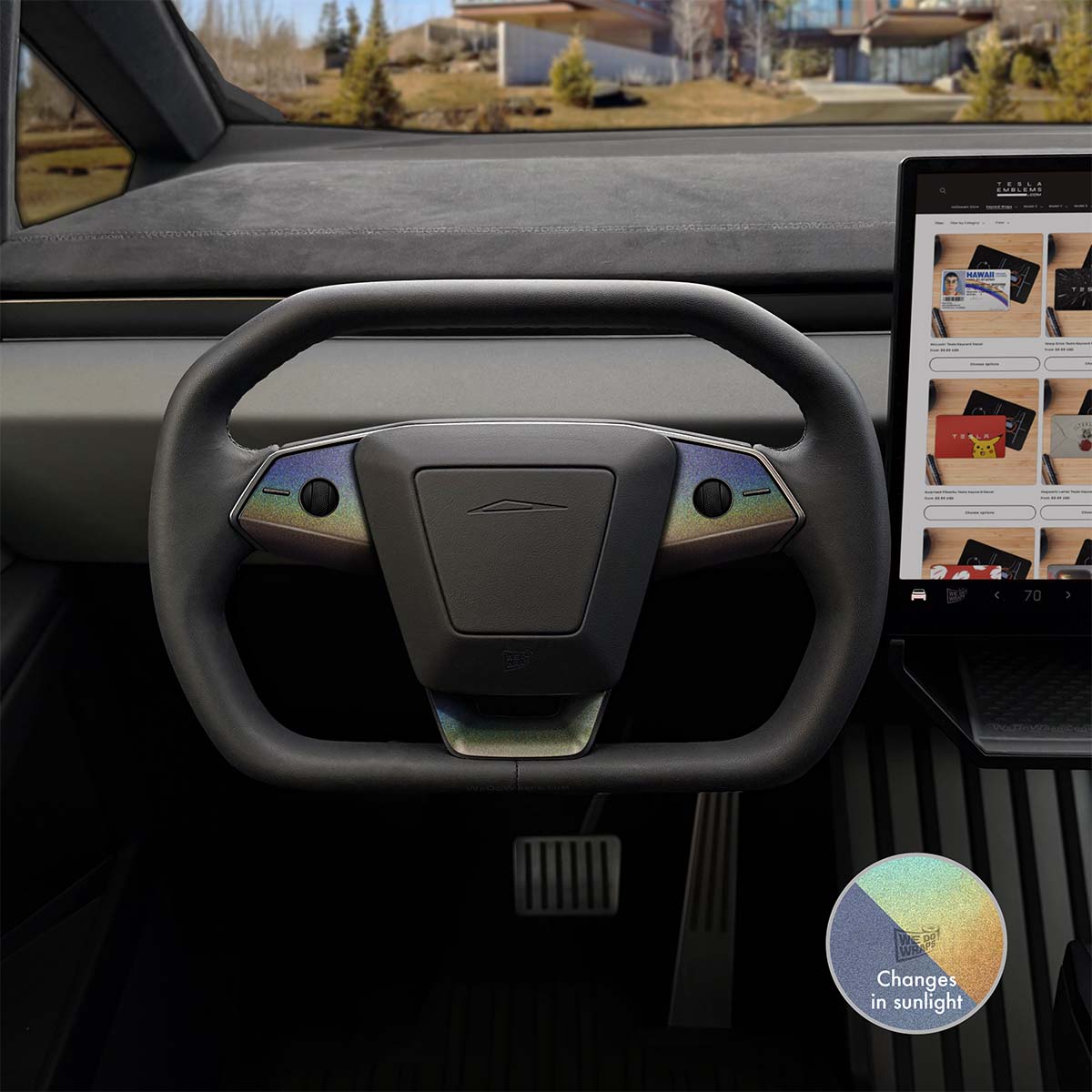 3M Satin Psychedelic Flip Tesla Steering Wheel Trim Decal Kit (3pcs) | Cybertruck