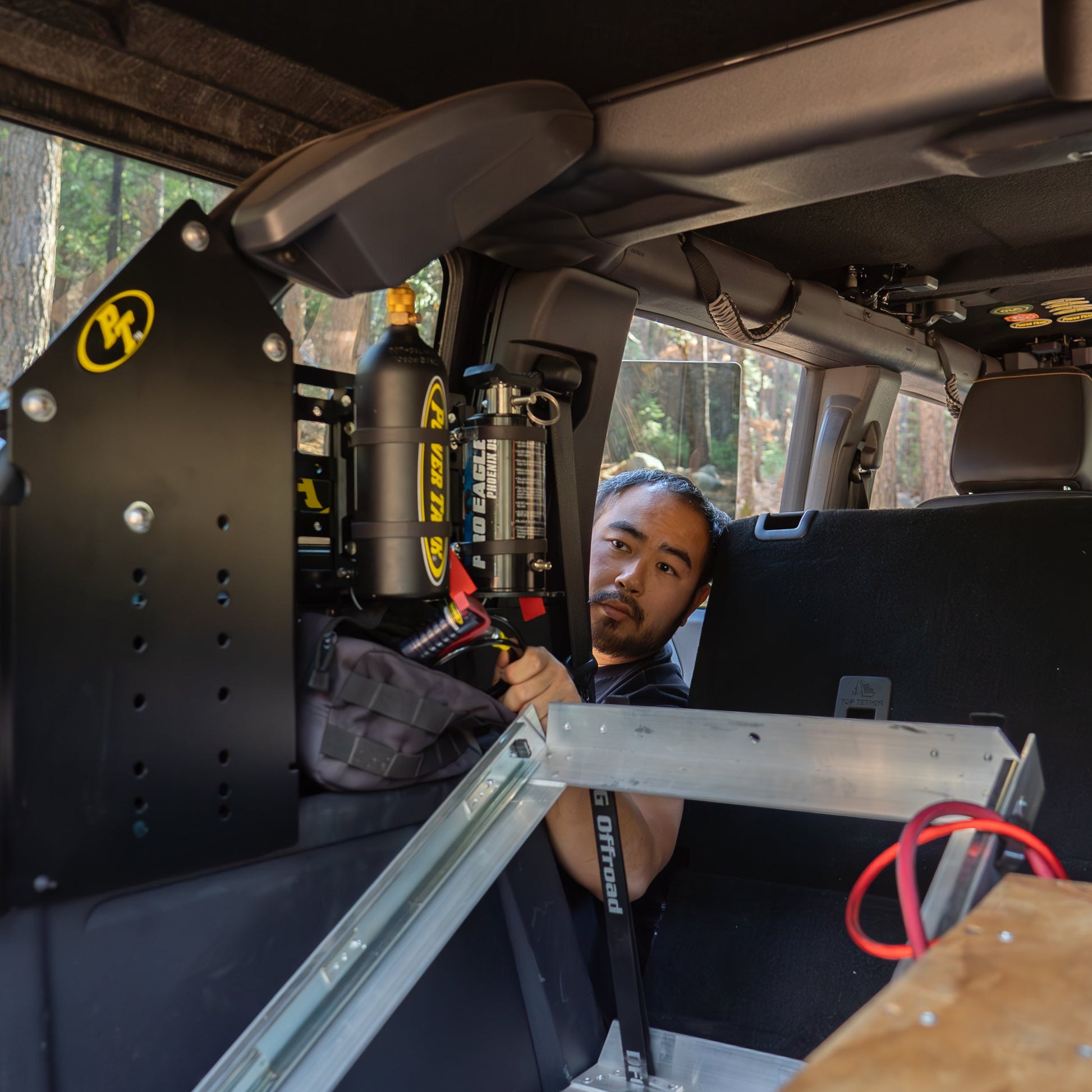 Quickly add bags, tire repair kits, quick-release brackets for fire extinguishers and shovels, and even propane tank brackets!