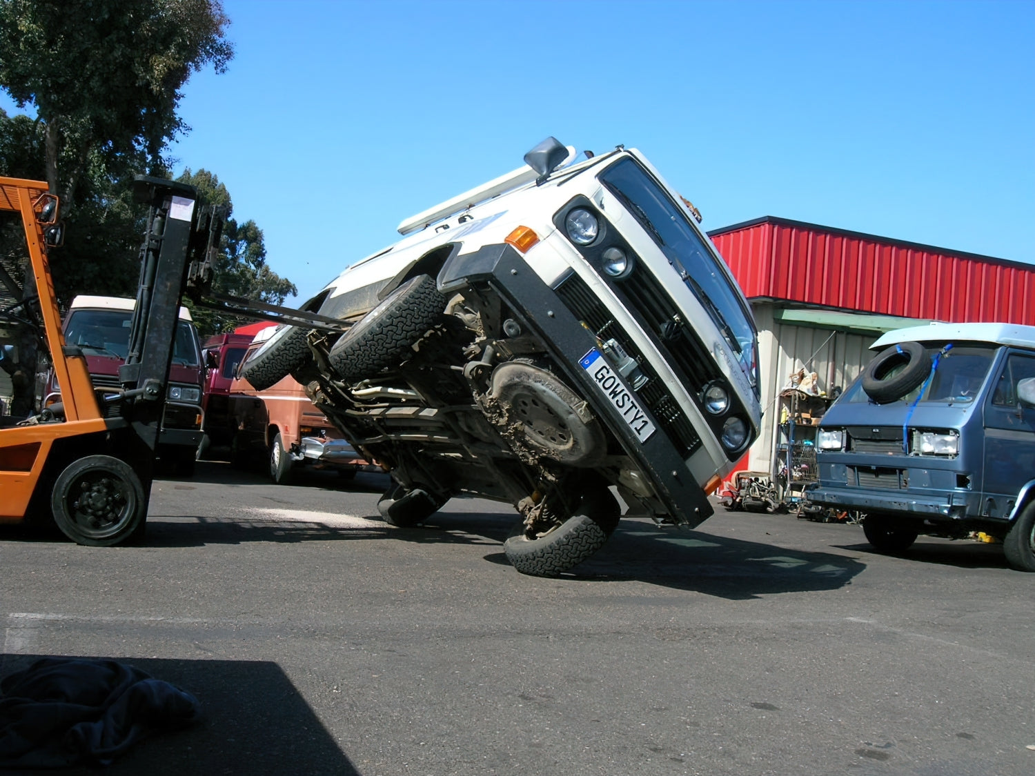 Anyone who has much off-road experience knows that the scariest thing is the fear of tipping sideways and rolling over. That is way more scary than going up or down steep hills. That is why it is very useful to know just how far you can tip your vehicle over and still be safe. Anything over about 20 degrees feels REALLY scary. Angles over 30 degrees should be avoided. Tipping it over 40 is... well, click here to find out.