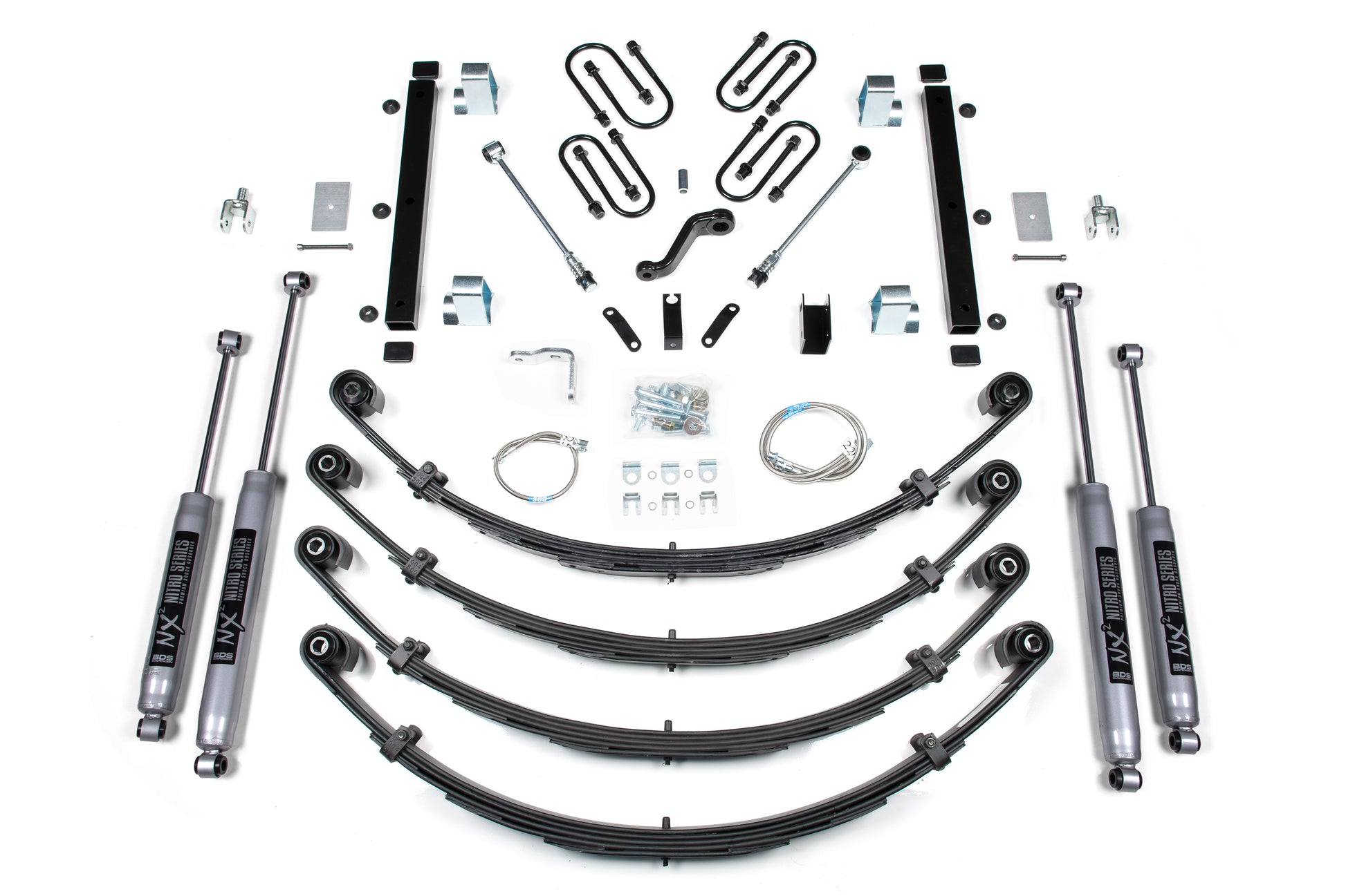 Built to outperform BDS engineered the Glide-Ride leaf springs into a multi-leaf progressive spring rate design that provides a smooth ride with any load. This is accomplished with an exclusive triple-stage leaf spring design. These spring feature tapered leafs anti-friction pads bolt style leaf alignment clamps and a full military wrap to protect your spring eyes from the rocks. Upgrading to BDS Glide-Ride leaf springs will provide flexibility throughout the suspension cycle.