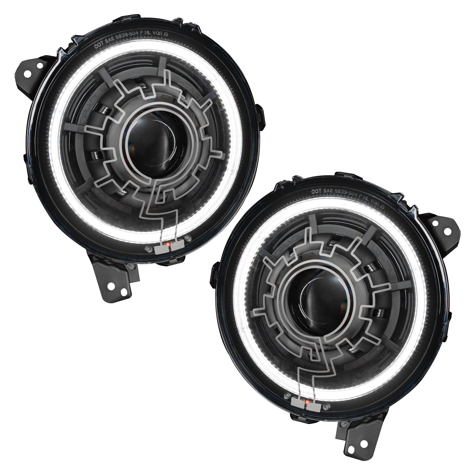 The best-selling Oculus Bi-LED Headlamp system by ORACLE Lighting is now available with a heated lens function for the coldest of environments. Driving in frigid conditions can be unsafe when snow and ice adhere to the lens of the headlight, blocking vital light output. Equip your Jeep Wrangler JL or Gladiator JT with the most advanced LED heated headlight to provide precision lighting and prevent any snow or ice accumulation. This de-icing feature on our heated Jeep headlight eliminates the worry of poor lighting performance and allows for the best functioning illumination when it matters most.Featuring advanced LED projection with 5,200 Lumens of high-quality illumination, the heated Jeep headlight offers enhanced driver visibility in all weather conditions. The LED light source has lower power demands compared to the factory lamps while providing more light output.Specifications:Headlight Beam Wattage: 36W EachTotal Headlight Beam Lumens: 5,200LMHeadlight Beam Color Temp: 5500KCertification: DOT SAE 5839-504 HL VOR 19Warranty: 2 Years