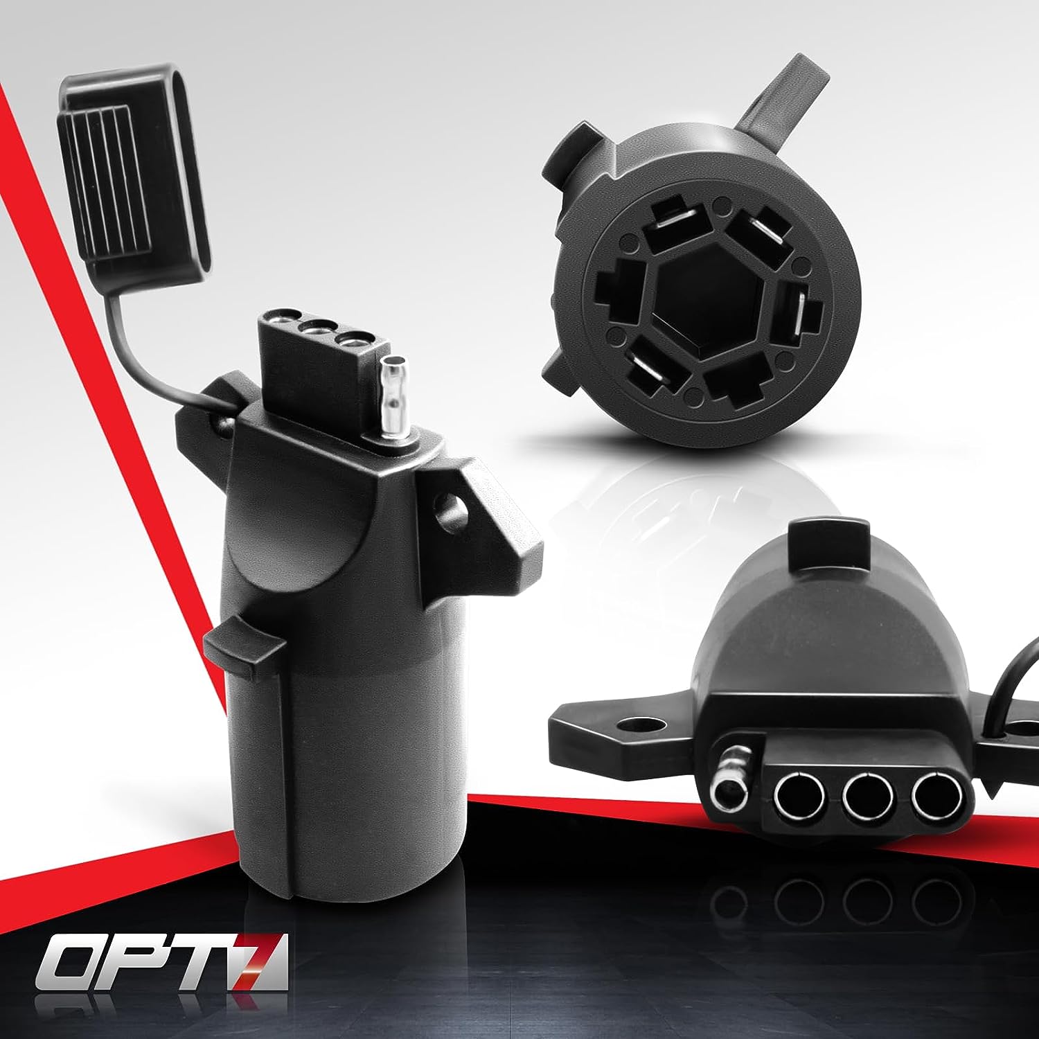 7-Way Round to 4-Way Flat Pin Adapter For Trailer Tow Hitch & Redline Tailgate LED