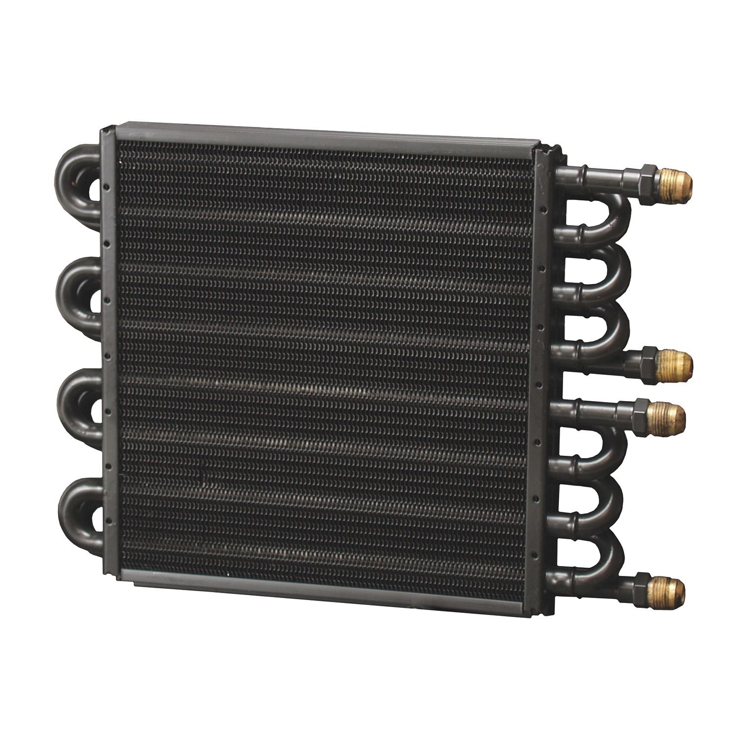 Featuring a free-flowing 8 & 8 pass cooler in one compact package and fabricated of 1/2" copper tubing and aluminum cooling fins, this Made in the USA Dual-circuit cooler includes 4 each -8AN inlets. It provides heat transfer capabilities for two independent systems such as engine and transmission or transmission and power steering that competitive units just can't match at anywhere near the price.