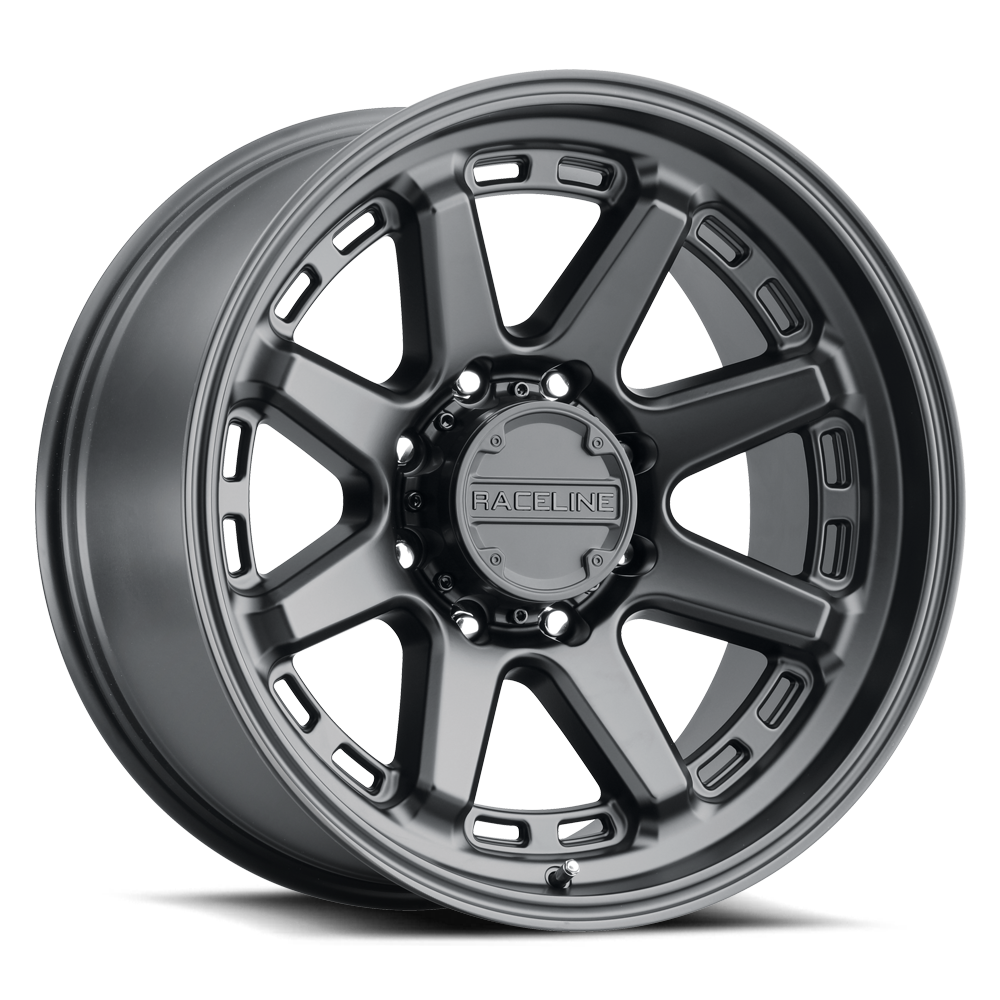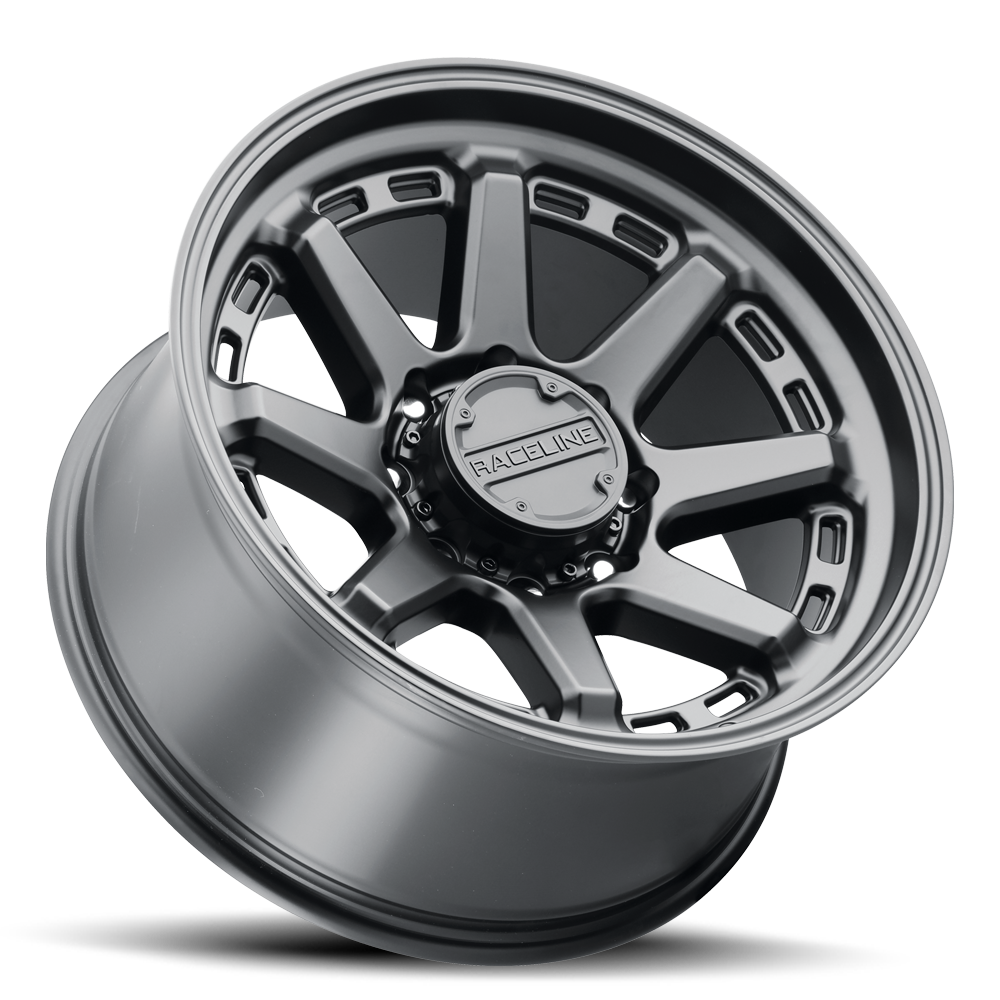 • Black-Out bolt on cap with contrasting embossed Raceline logo