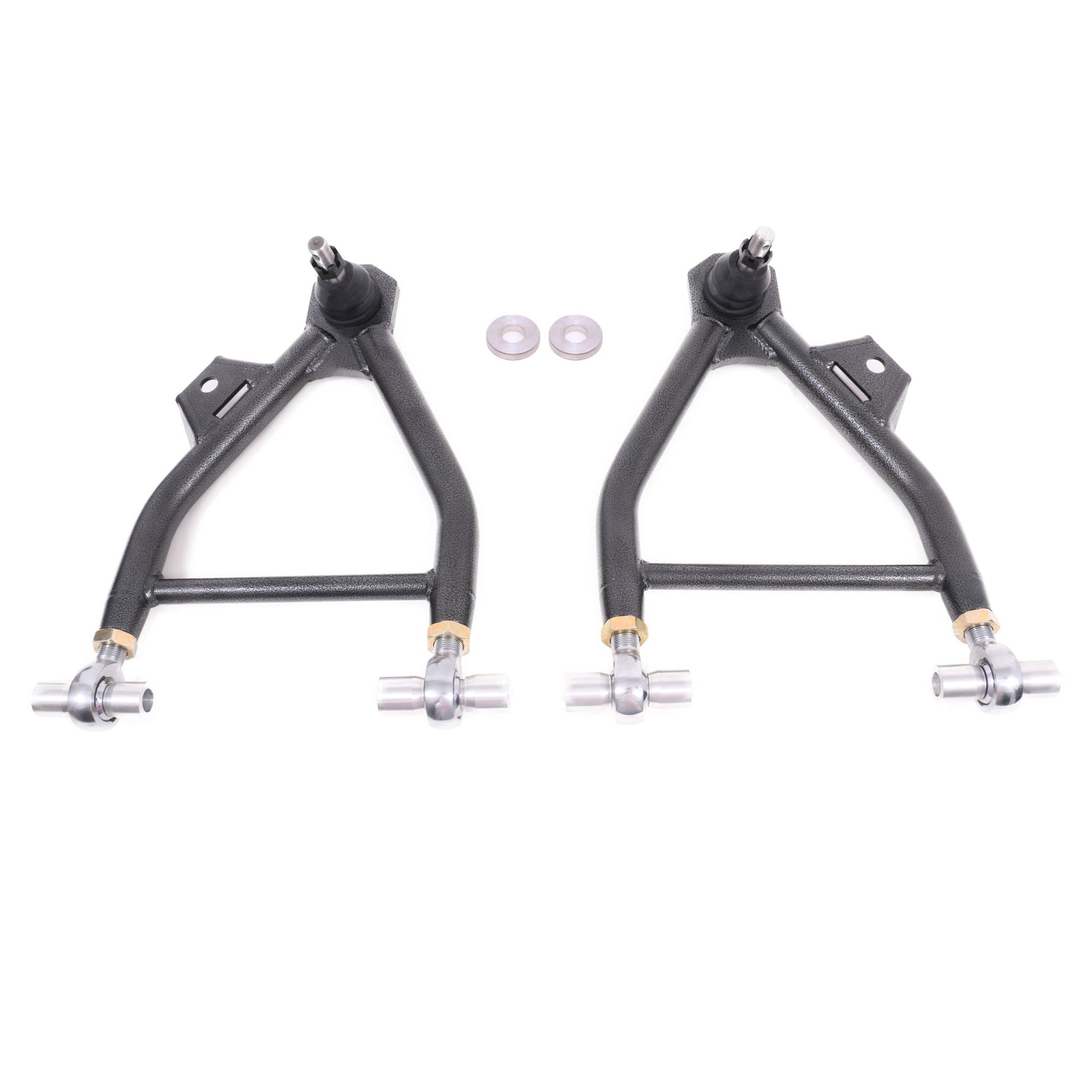 A-arms are one of the most important, yet overlooked suspension components. They are the direct link between the front wheels and the chassis. Any deflection causes a change in alignment, which results in poor performance and driving feel. Fabricated from heavy-duty 1.5-inch, 0.095-inch wall and 1.25-inch, 0.095-inch wall DOM tubing, deflection is eliminated with A-arms from BMR Suspension. BMR?s AA042 Lower A-arms are equipped with heavy-duty, Teflon-lined rod ends. BMR?s heavy-duty rod ends are designed to solidly link the A-arms to the body, eliminating deflection. Our rod ends will stand up to high loads of any performance environment, offering all of the bind-free suspension articulation needed for great handling.