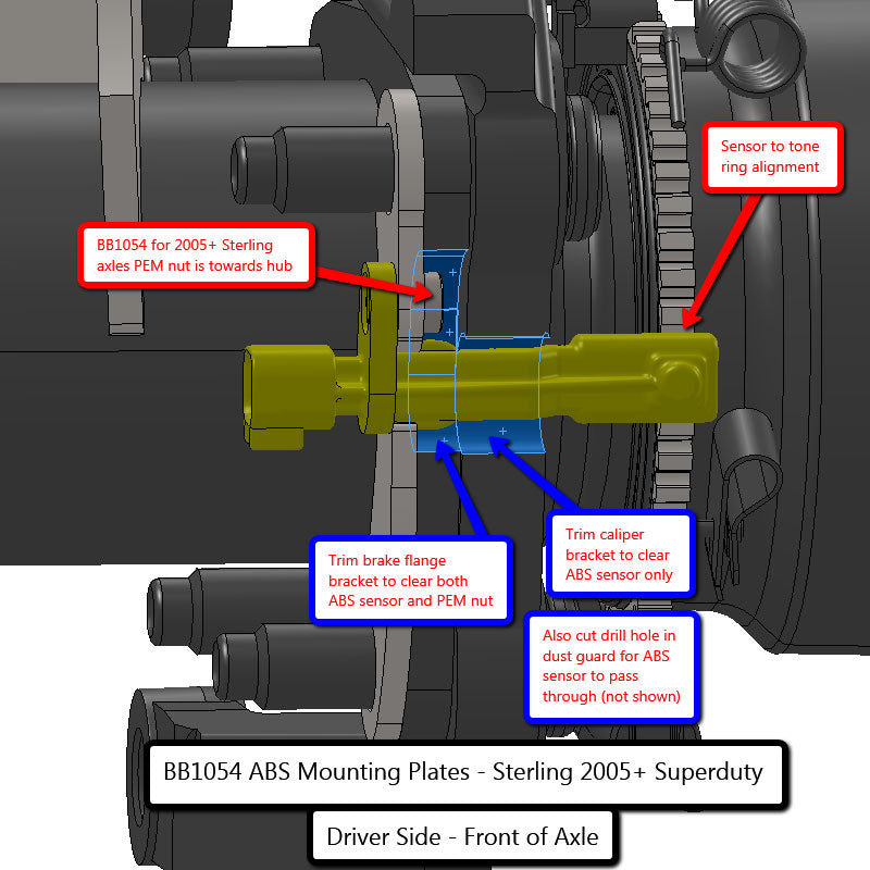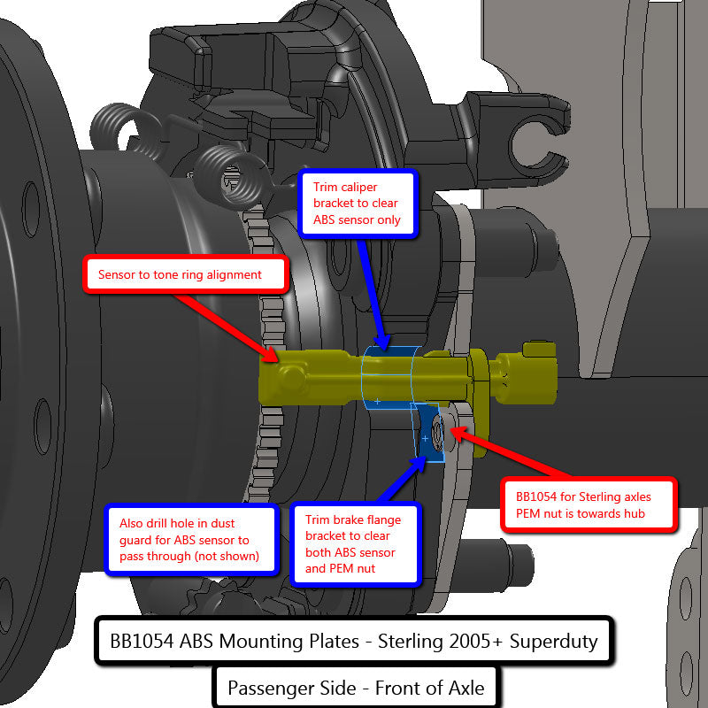 If using a front axle without tone rings a second BB1054 can be used to add a second ABS Sensor to each wheel and then splice into the front sensor wiring.