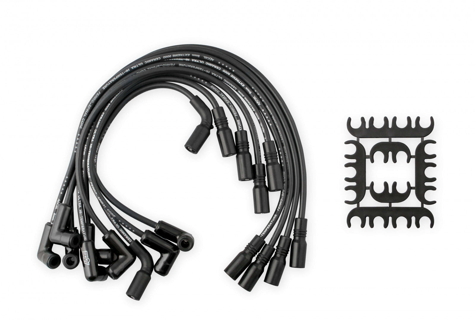 ACCEL now offers the cure for burnt spark plug boots with Extreme 9000 Ceramic wire kits. The 8mm Ferro-Spiral core wire now has ceramic boots on the spark plug end of the wires. Ceramic boots withstand up to 2,000 degrees. Great for running headers with close tolerances, an engine bay with little room, or an RV with boots that melt because of heat. Ultra high temperature double silicone construction wire rated at 600 degrees fahrenheit peak. 500 ohms/ft Ferro-Spiral core developed for performance use. Excellent energy delivery to the spark plugs, while providing the highest level of RFI/EMI suppression. Stainless steel spark plug terminals for maximum spark energy to the plugs. Pre-made to factory lengths for a perfect fit.