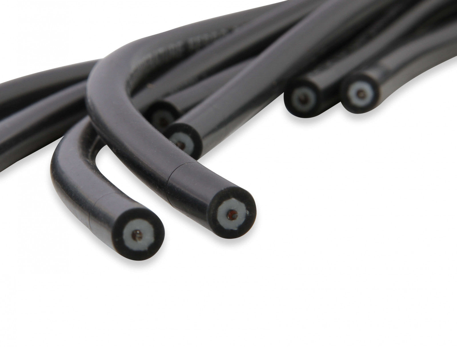 ACCEL now offers the cure for burnt spark plug wire boots with Extreme 9000 Ceramic Wire kits. The 8mm Ferro-Spiral core wire now has ceramic boots on the spark plug end of the wires. The ceramic boots will withstand up to 2,000 degrees F. If you are running headers with close tolerances, have an engine bay with little room or an RV with boots that melt because of heat, these wire kits are the answer for burnt and melting boots. The wire uses a 500 Ohms/ft Ferro-Spiral core developed for performance use. It provides excellent energy delivery to the spark plugs, while providing the highest level of RFI/EMI suppression. The Extreme 9000 Ceramic Wires also feature stainless steel spark plug terminals for maximum spark energy to the plugs.