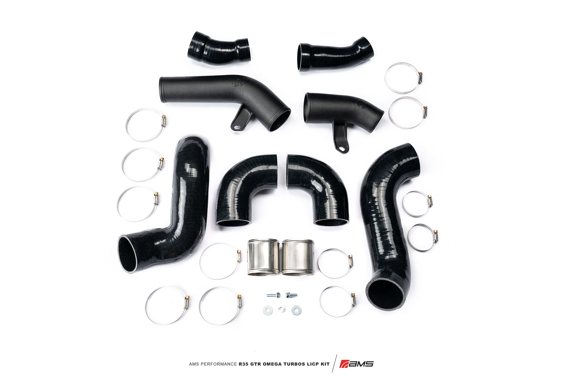 The AMS Performance R35 GTR OMEGA Turbo Kit Lower Intercooler Piping provide maximum airflow for maximum horsepower and torque. By increasing the size of the lower intercooler pipe on the GT-R from 70mm (2.75?) to 76mm (3?) we allow for more airflow resulting in the greatest increase in HP and torque. Each pipe is powder coated in wrinkle black for good looks and durability.