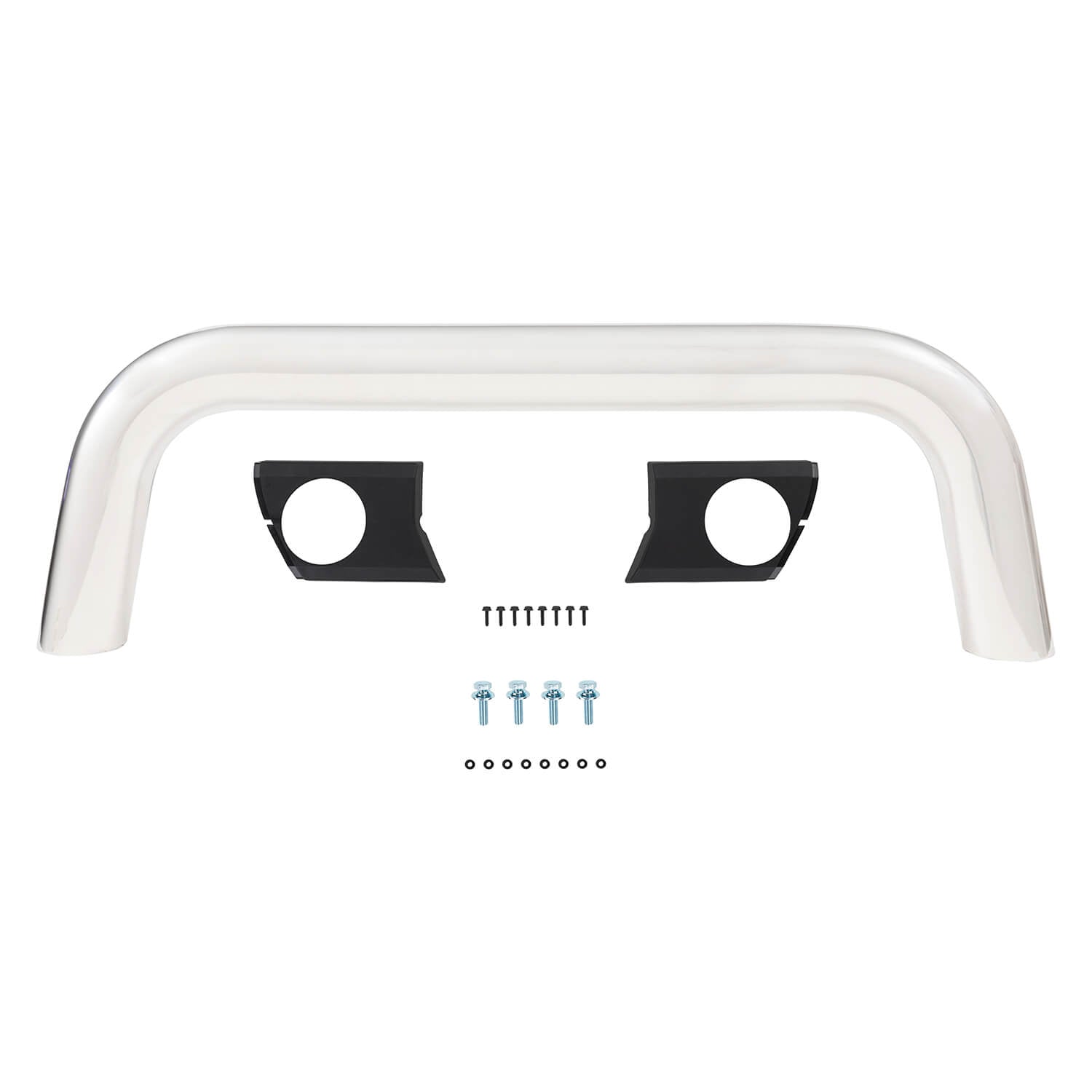 An optional polished or painted center tube offers a different look to the more traditional bumper design. An internal mandrel bender is used to shape the center tube, ensuring even wall thickness throughout.
