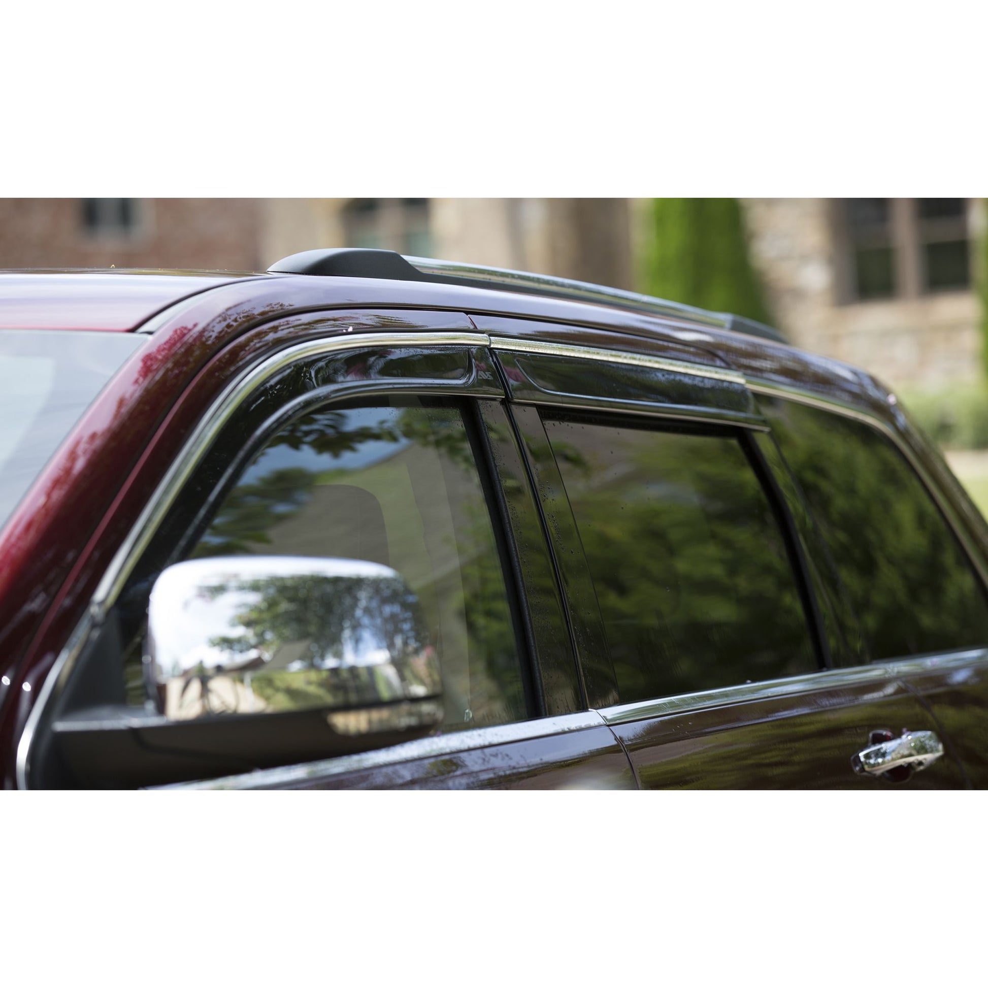 Hit the open road in style with the lowest profile window deflector on the market. The AVS Low Pro le Ventvisor is designed to complete the look of your vehicle by adding subtle style while maintaining the functionality you desire from a side window de ector. Made of impact resistant acrylic with a dark smoke nish or warp-resistant ABS construction in a chrome or matte black nish, this Ventvisor is strong yet exible enough to withstand all of nature's elements, from rain and ice to scratching branches and glaring sun. It comes custom-molded to match your vehicle's year, make, and model, and hugs the contours of your car for a sleek, aerodynamic look. Installation is hassle-free and can be done it minutes from the comfort of your own home. No drilling or tools required, just attach using the included 3M automotive grade adhesive. Once installed, it's easy to refresh your morning commute by rolling down your windows and circulating air through your cab, keeping it fresh and scent-free even in bad weather. When parked, leave the windows cracked to prevent heat buildup while keeping rain out. Plus, it's backed by a Limited Lifetime Warranty. Proudly made in the USA with global materials.