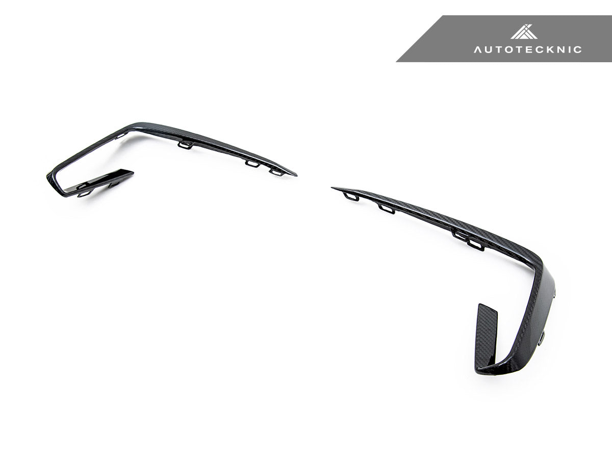 These AutoTecknic Carbon Fiber Front Bumper Trim Set will match with all the different aerodynamic packages currently offered on the market.