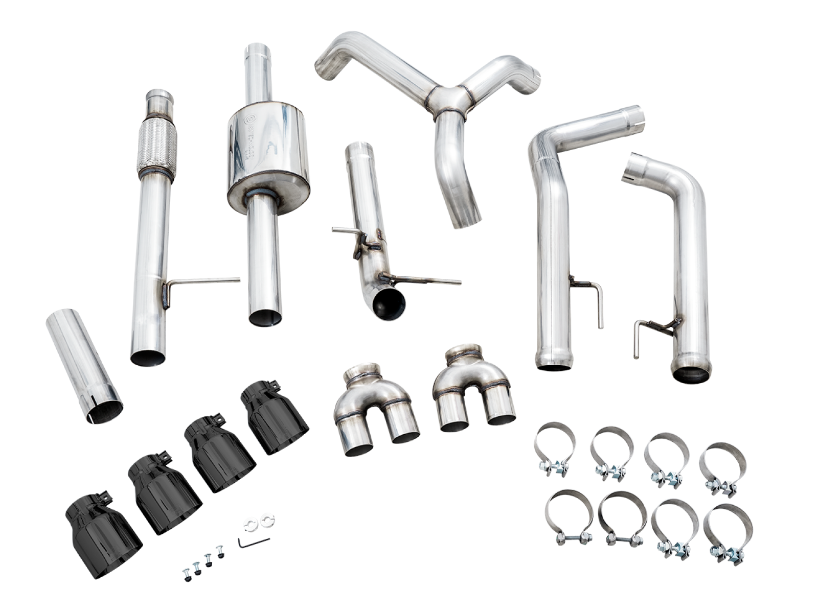AWE 0FG Catback Split Rear Exit Exhaust for 4th Gen Silverado/Sierra 1500 5.3L (With Bumper Cutouts) - Quad Diamond Black Tips