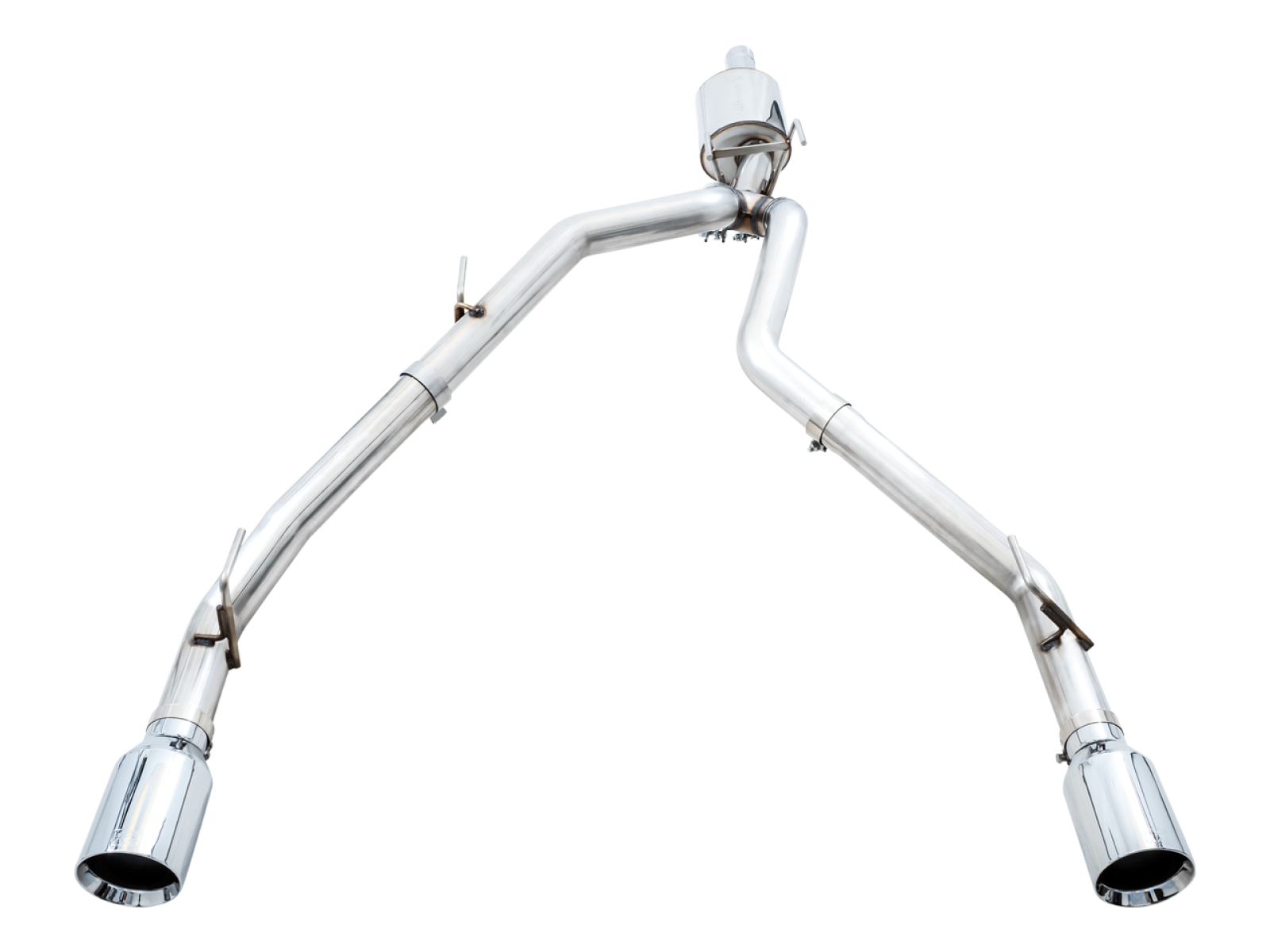 AWE 0FG Dual Rear Exit Catback Exhaust for 4th Gen RAM 1500 5.7L (without bumper cutouts) - Chrome Silver Tips